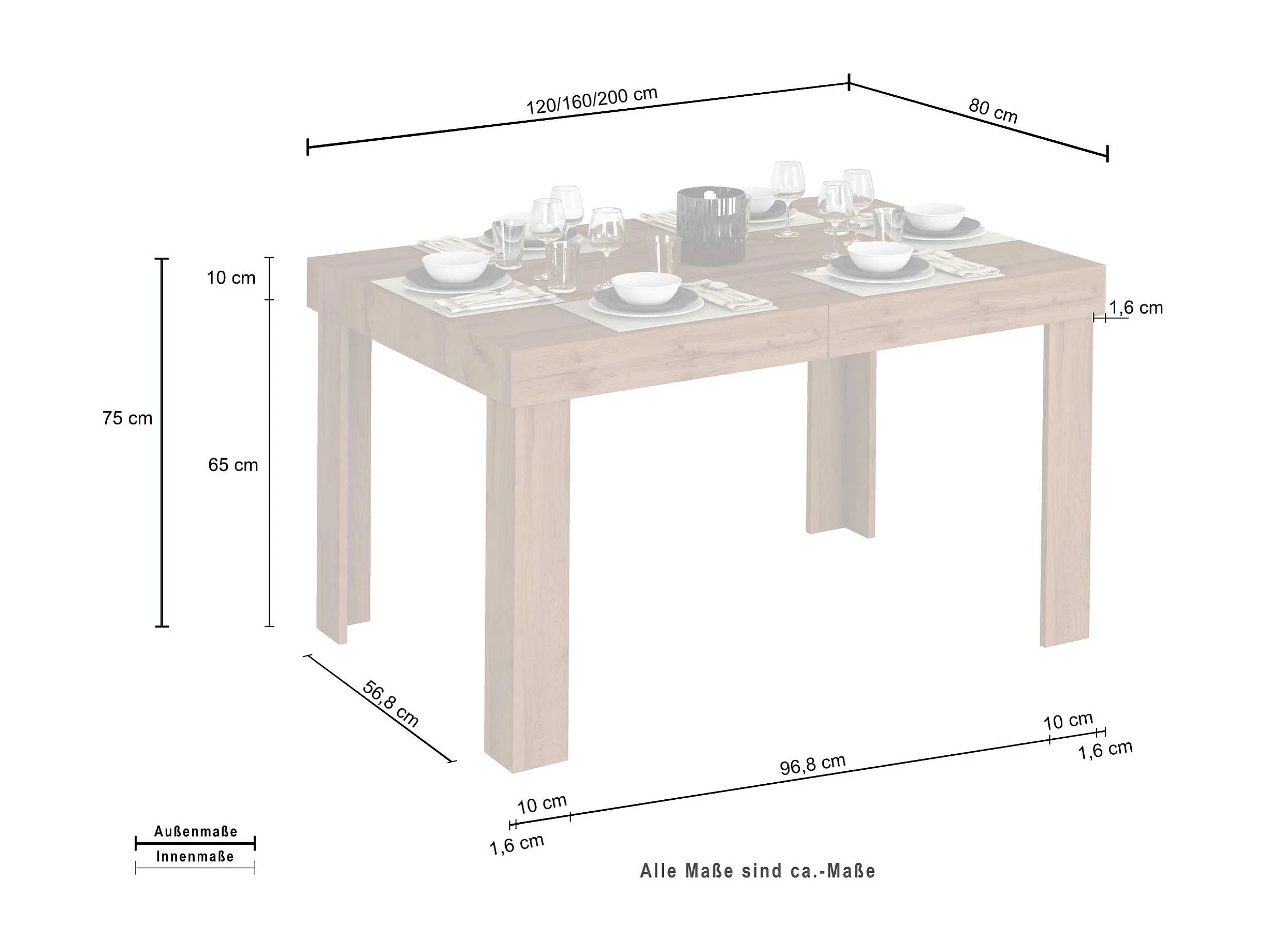 Tavolo allungabile Chronos ideale per 4-10 persone colore rovere 120/160/200x80x75 cm