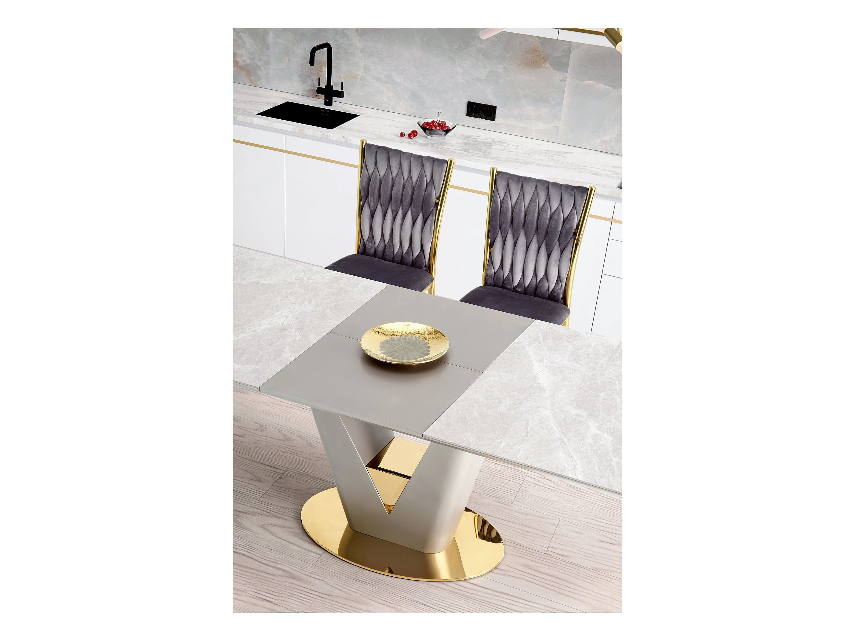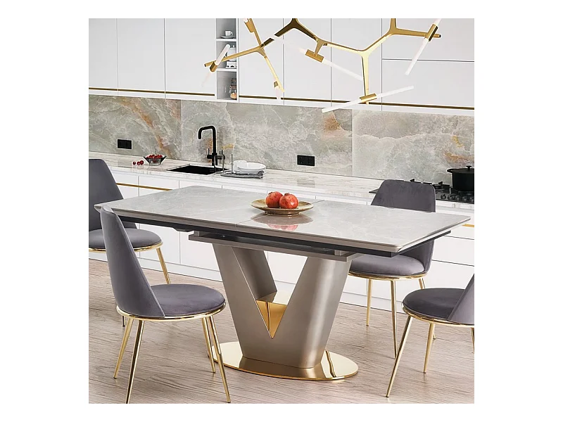 Tavolo allungabile con piano in simil marmo e base design EAGLE grigio e oro