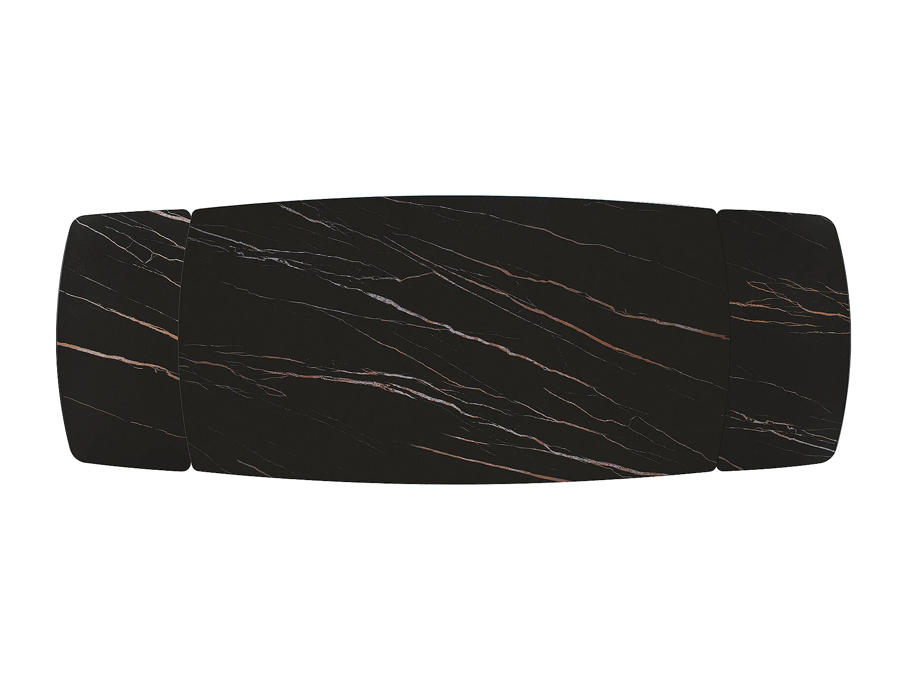 Tavolo allungabile Daniele,Piano in ceramica matt golden nero, gambe in metallo bronzo a X, 160x90 cm