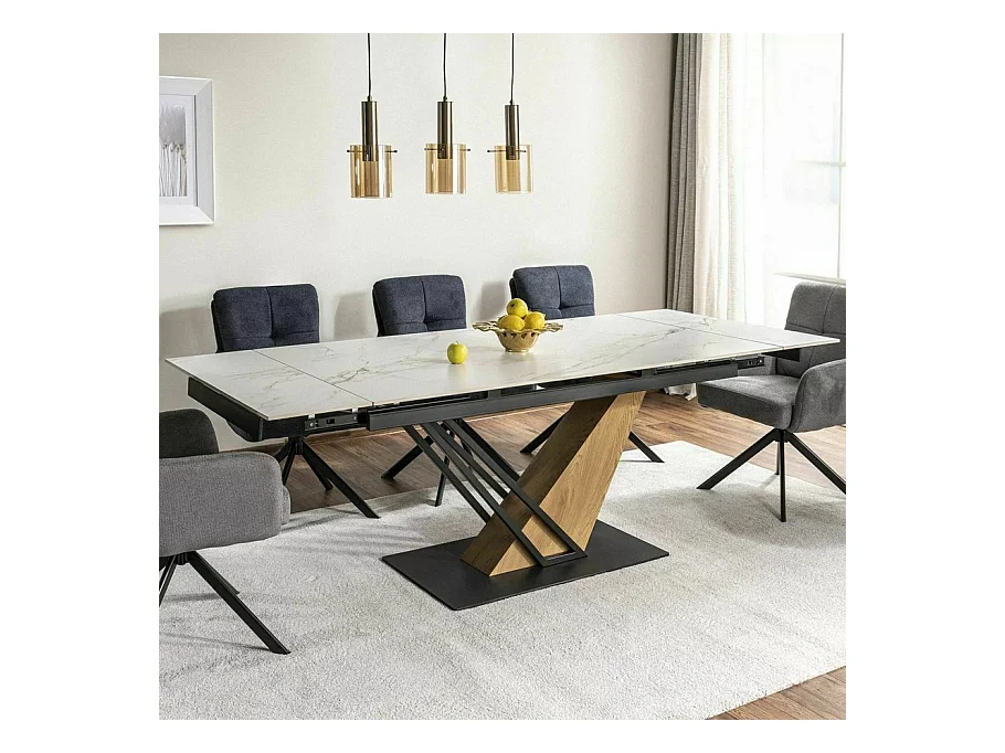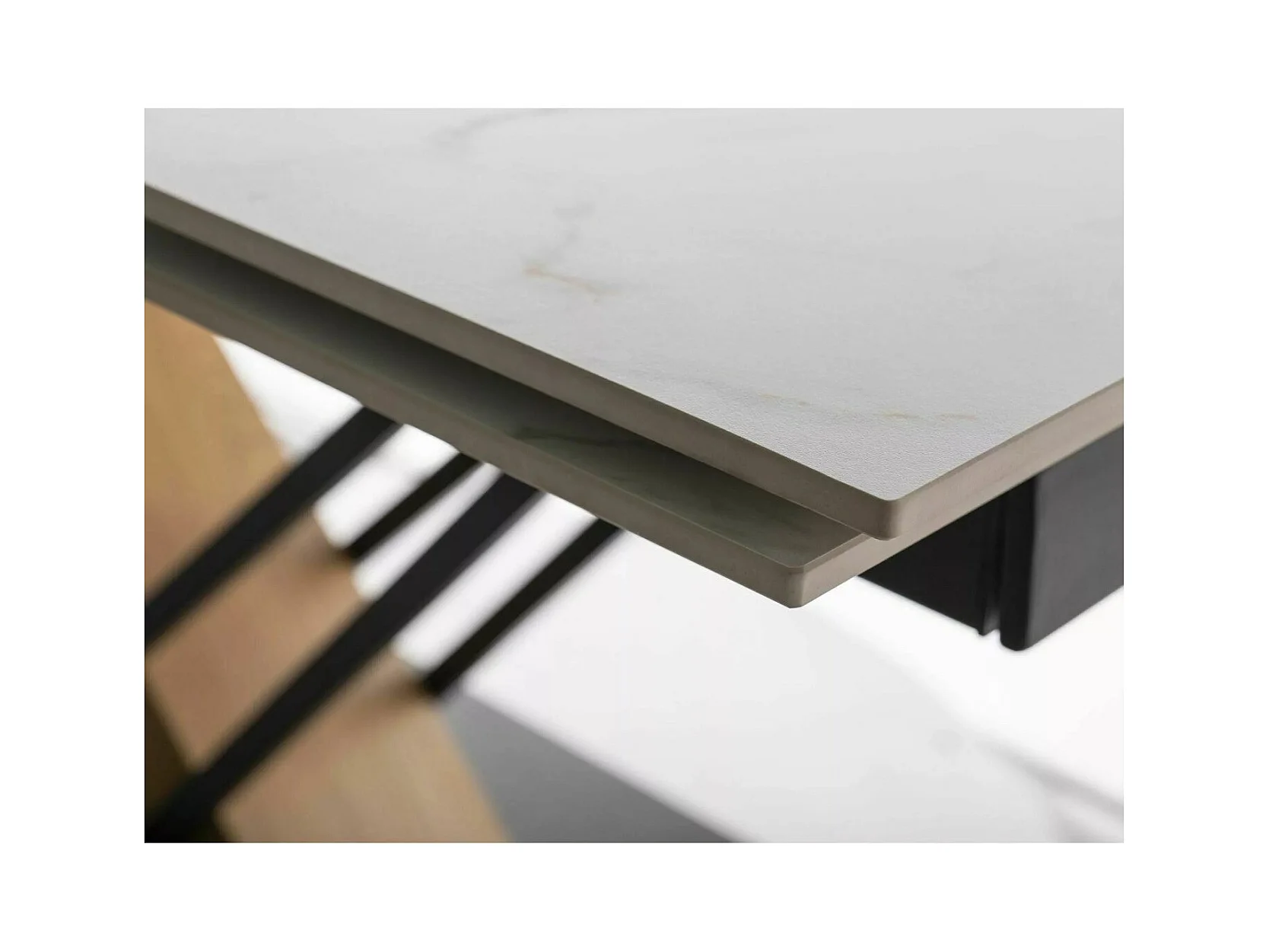 Tavolo da pranzo allungabile Tommy in ceramica bianca effetto marmo 160-200 cm