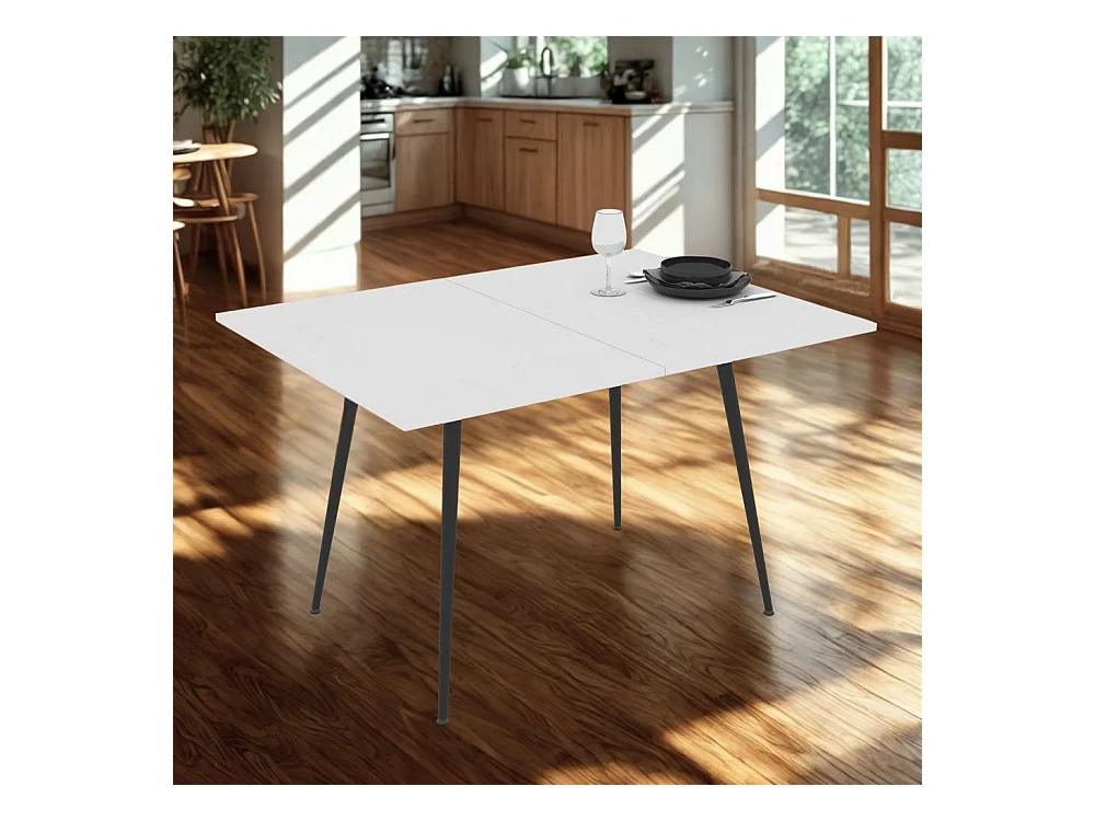 Tavolo allungabile Dava con piano bianco opaco e gambe in metallo nero 200x100x74H