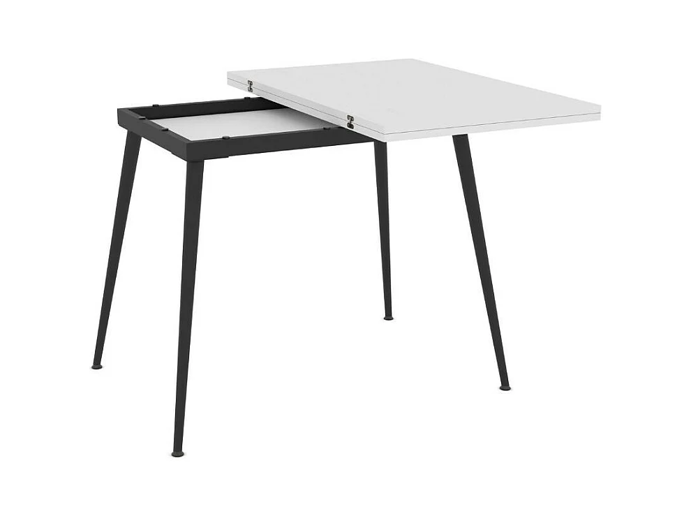 Tavolo rettangolare allungabile Belinda piano bianco e base nera 160x90x75