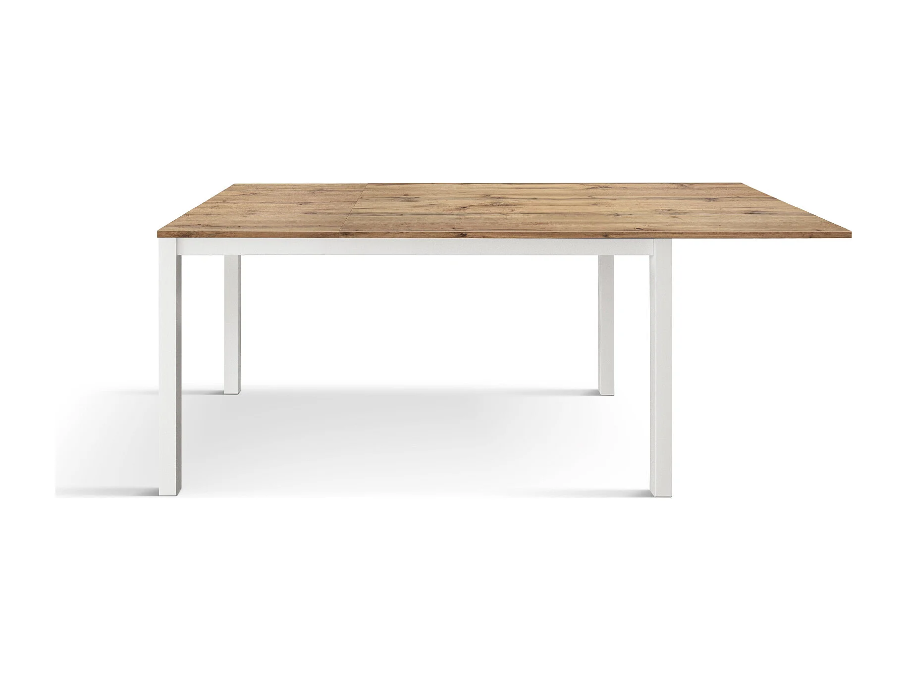 Tavolo allungabile Elena, Top nobilitato, Base Metallo,Made in Italy, Basamento bianco, Rovere rustico, 160x90x75
