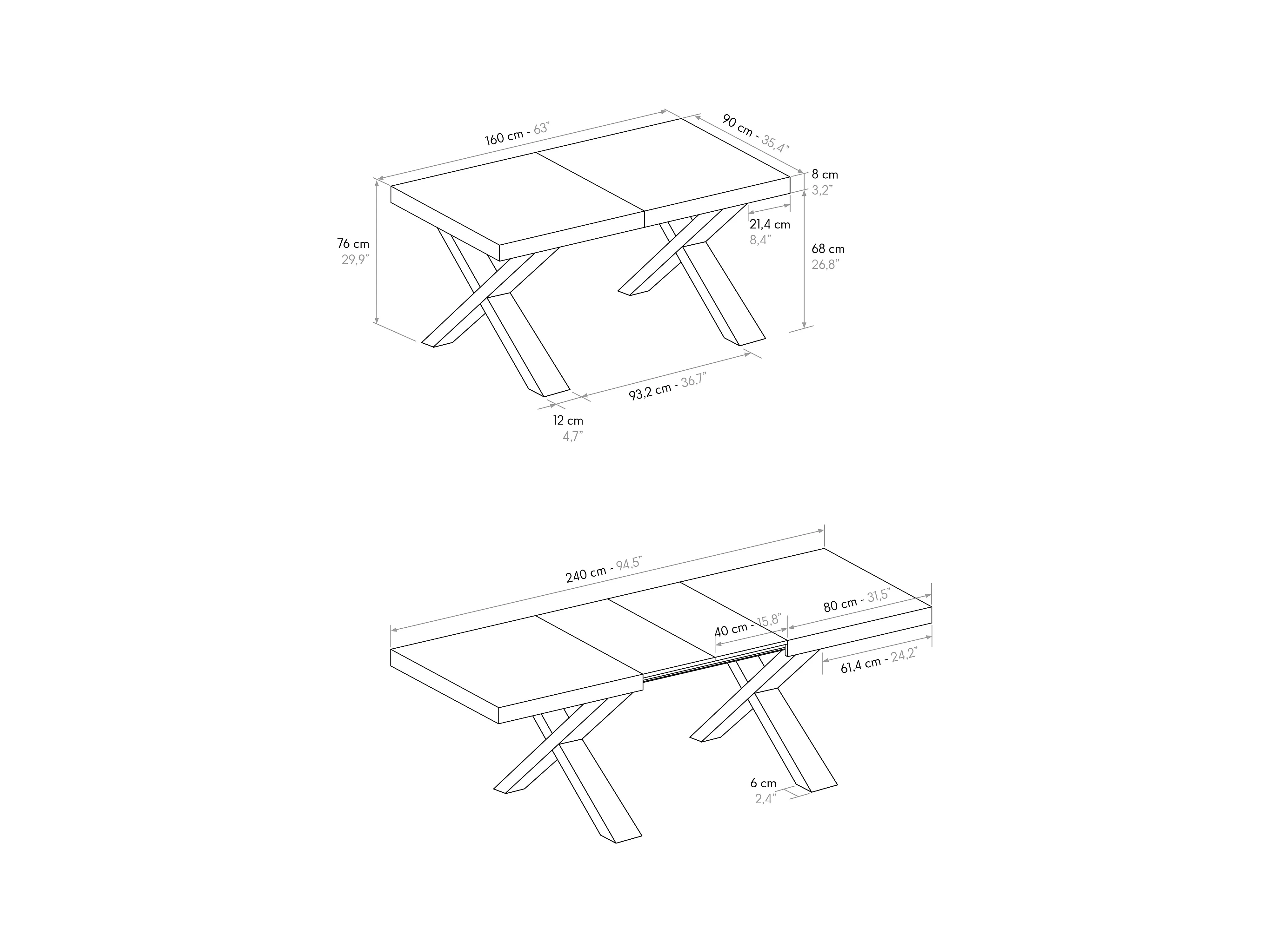 Tavolo Allungabile Elisa, Gambe Incrociate a X, Made in Italy, Basamento nero, Rovere rustico, 160x90x76 cm