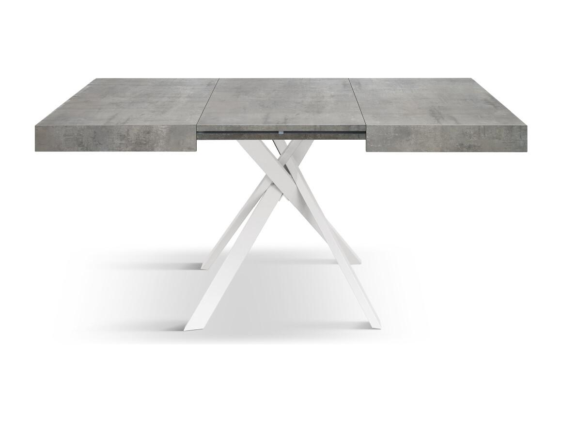 Tavolo Allungabile Fulvio, Gambe Incrociate Bianche, Made In Italy, Grigio Cemento, Tavolo Cucina, Tavolo Sala Da Pranzo, Tavolo Estensibile, 95x90x76 cm