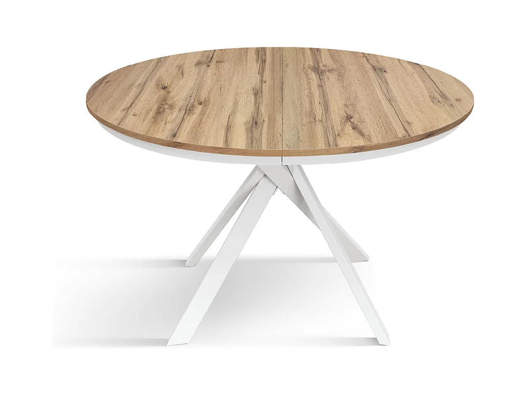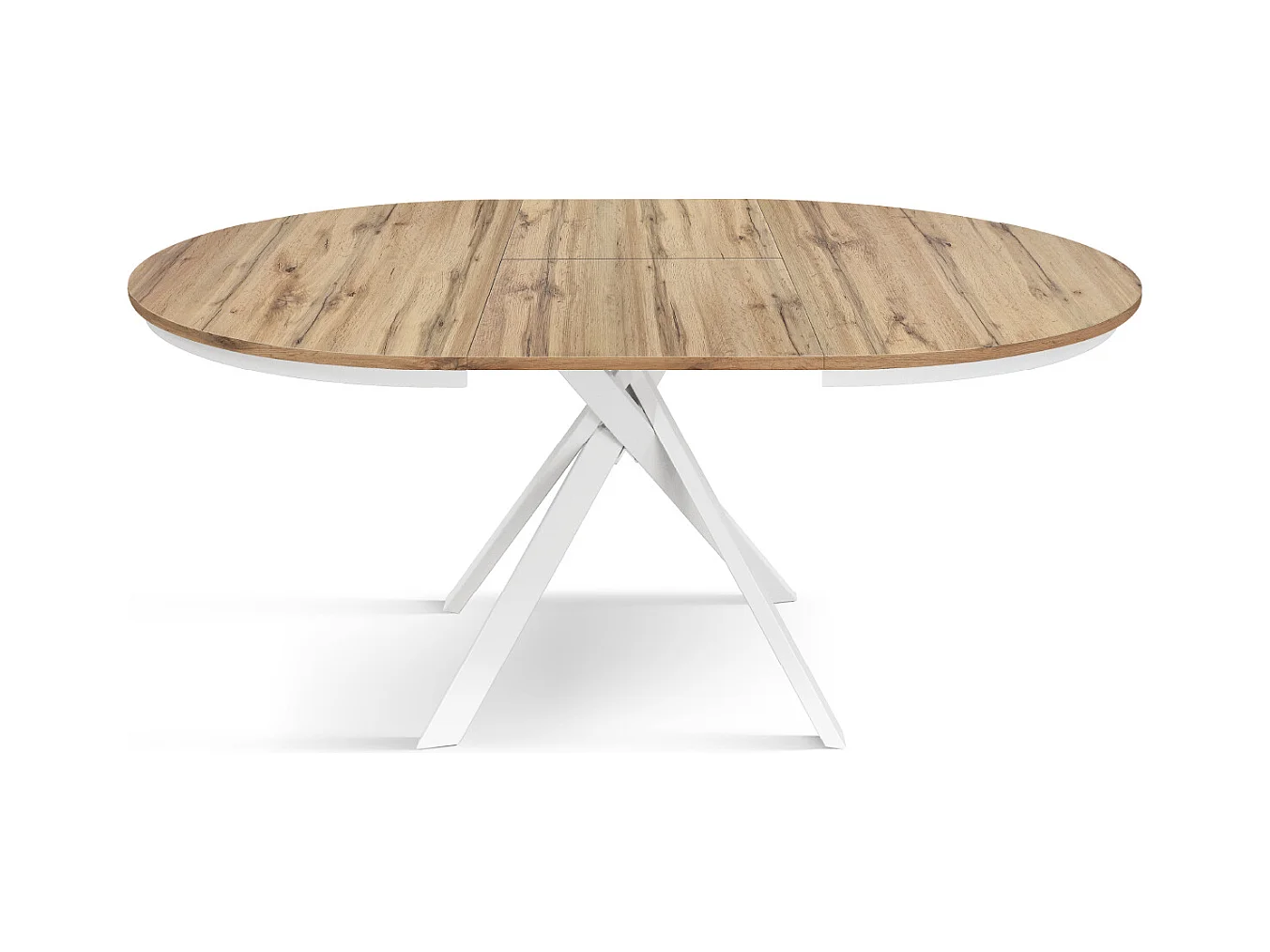 Tavolo Allungabile Gabri, Gambe Incrociate Shangay rotondo, Made in Italy, Basamento bianco, Rovere rustico