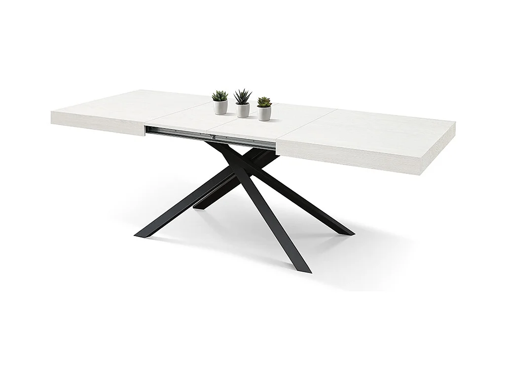Tavolo Allungabile Claudia, Gambe Incrociate, Made in Italy, Basamento Nero, Bianco Frassinato, 160x90x76 cm