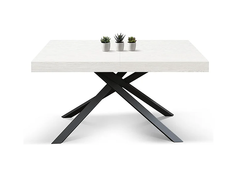 Tavolo Allungabile Giulia, Gambe Incrociate , Made in Italy, 140 x 90 x 74 cm, Bianco Frassinato con Gamba Nera