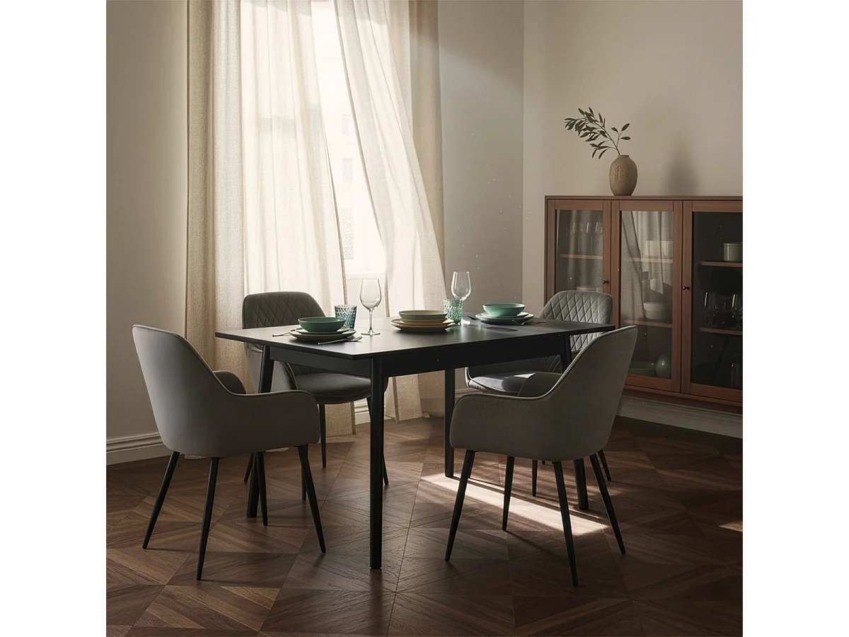 Tavolo allungabile Merkur con gambe in metallo sagomate e piano colore nero 190x103x76H