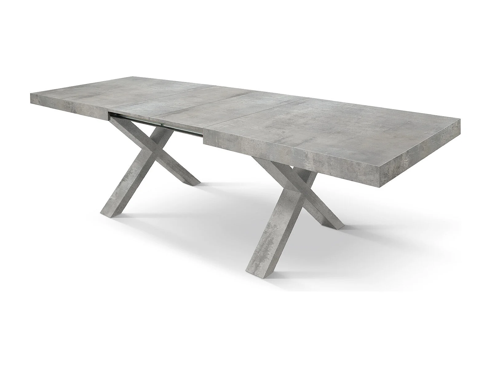 Tavolo Allungabile Iride, Gambe Incrociate a X, Made in Italy, Basamento cemento, Grigio cemento, 160x90x76 cm
