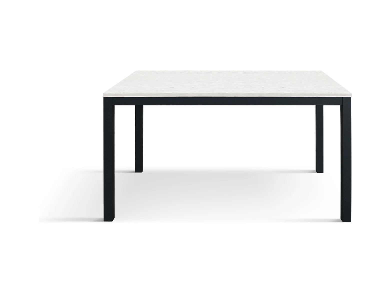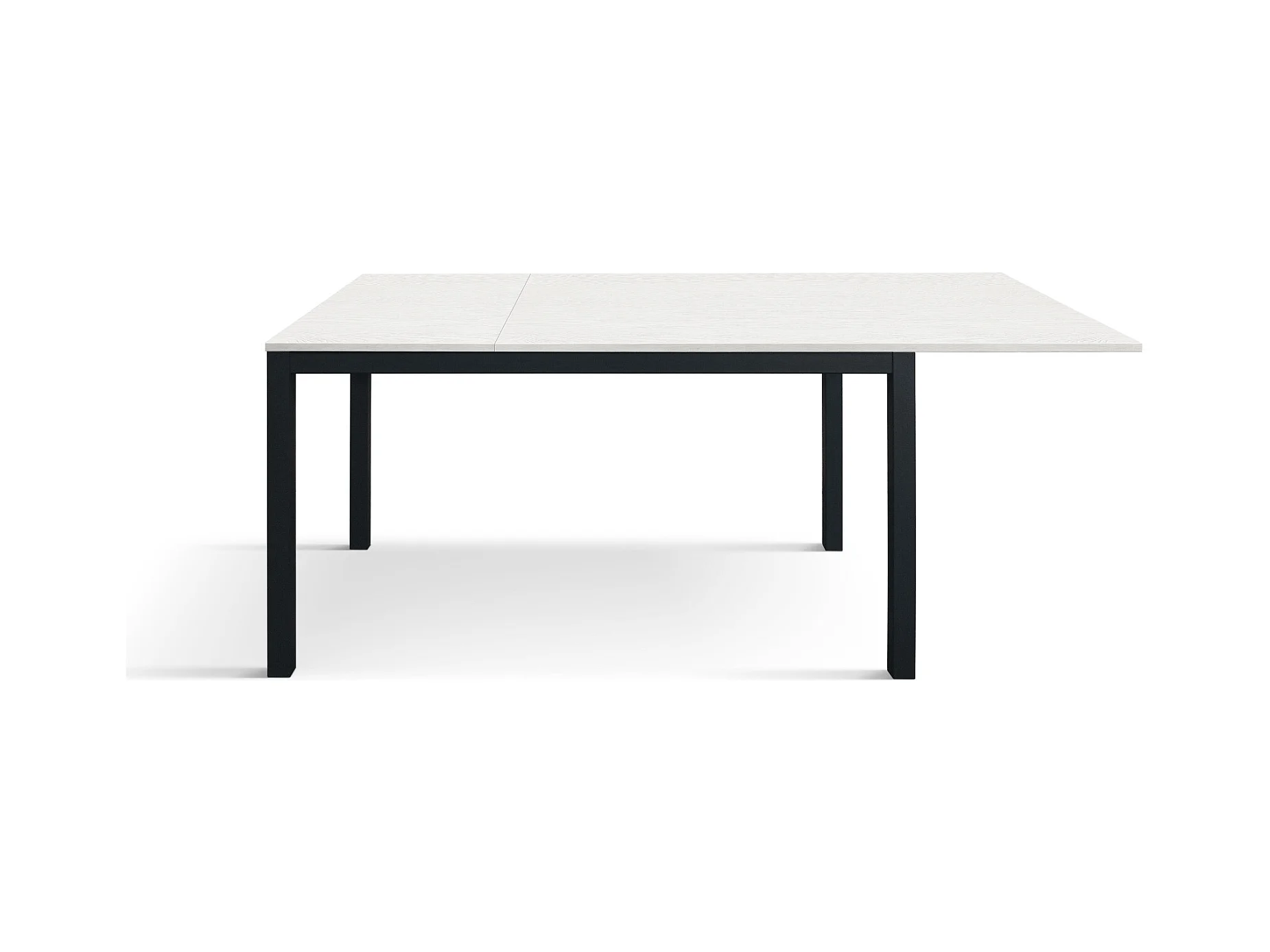 Tavolo allungabile Lucia, Top nobilitato, Base Metallo,Made in Italy, Basamento nero, Bianco frassinato, 160x90x75 cm