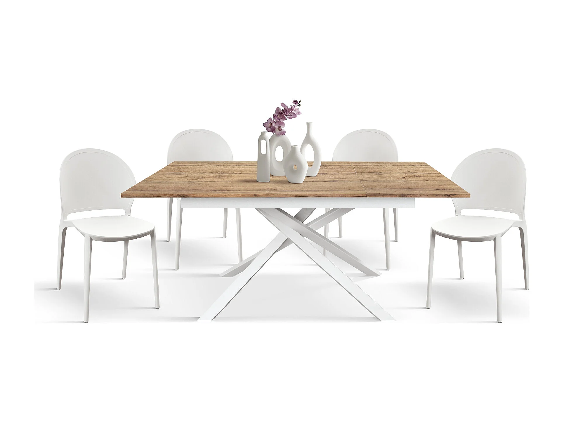 Tavolo Allungabile Marisa, Gambe Incrociate, Made in Italy, Basamento Bianco, Rovere Rustico, 120x80x76 cm