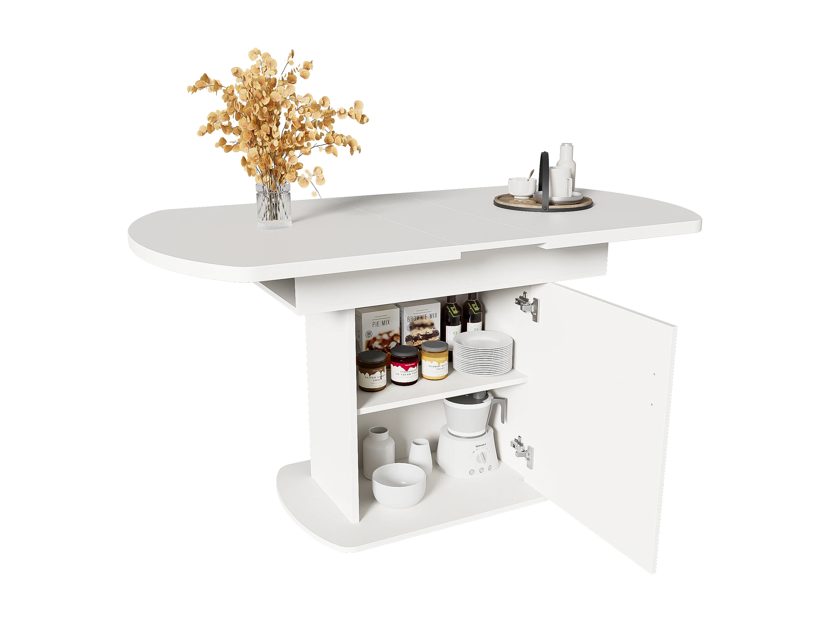 Tavolo allungabile MDF métal ovale L110-130 x l70 x H75 cm blanc rangement argenté