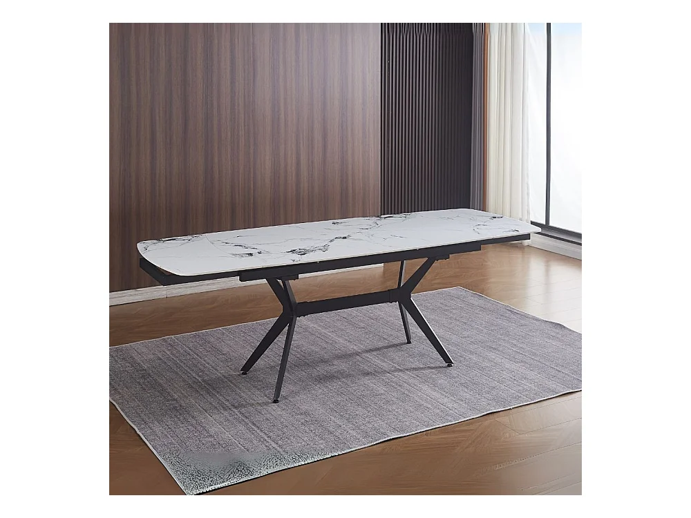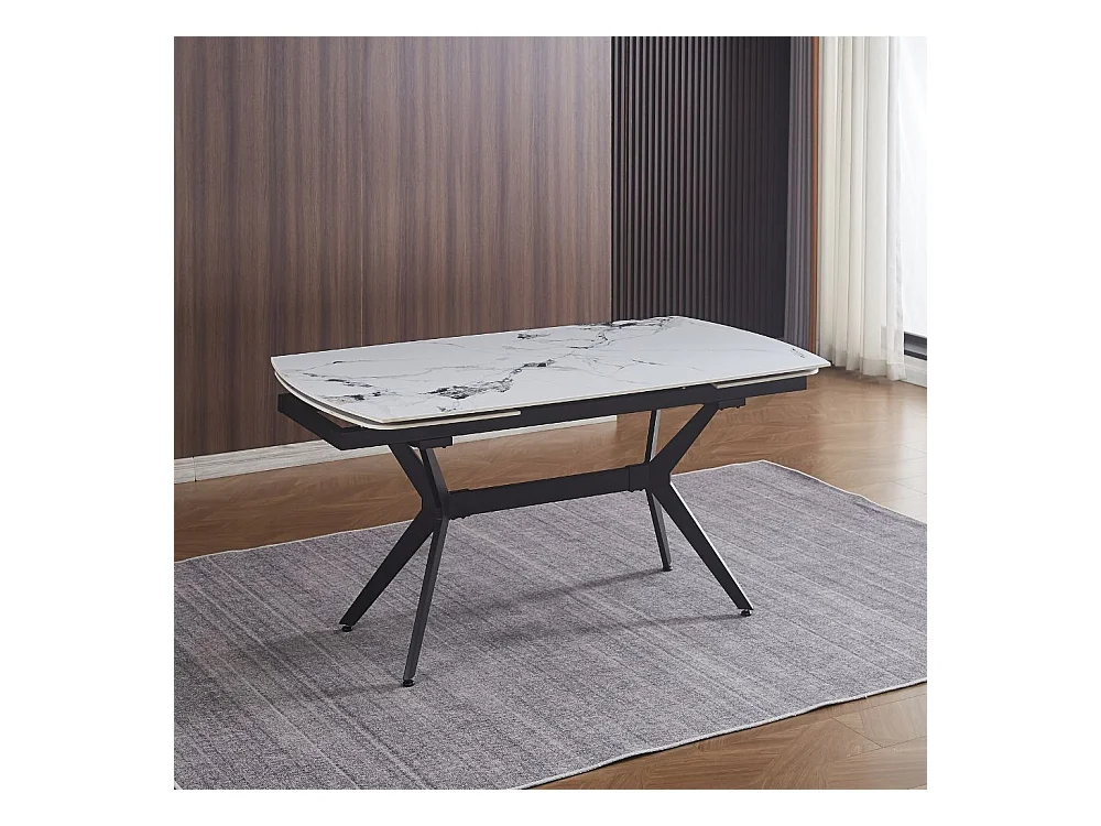 Tavolo Style con piano in ceramica effetto marmo bianco lucido e gambe nere