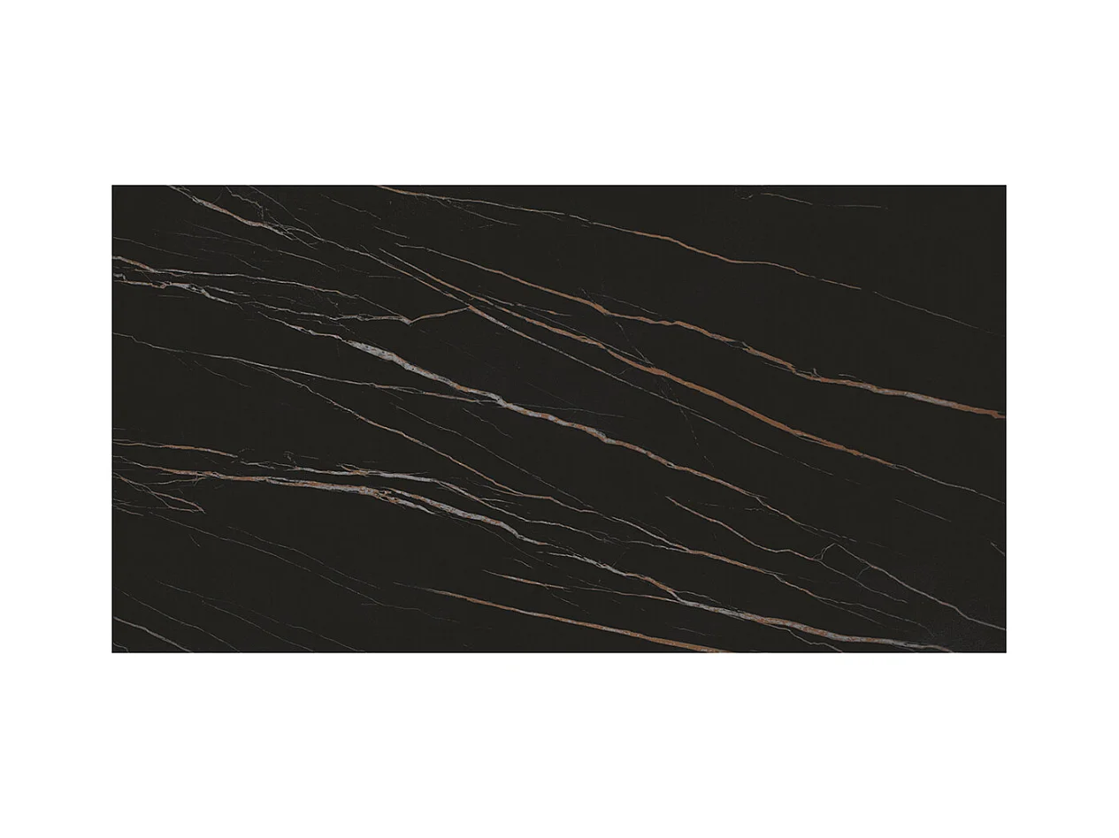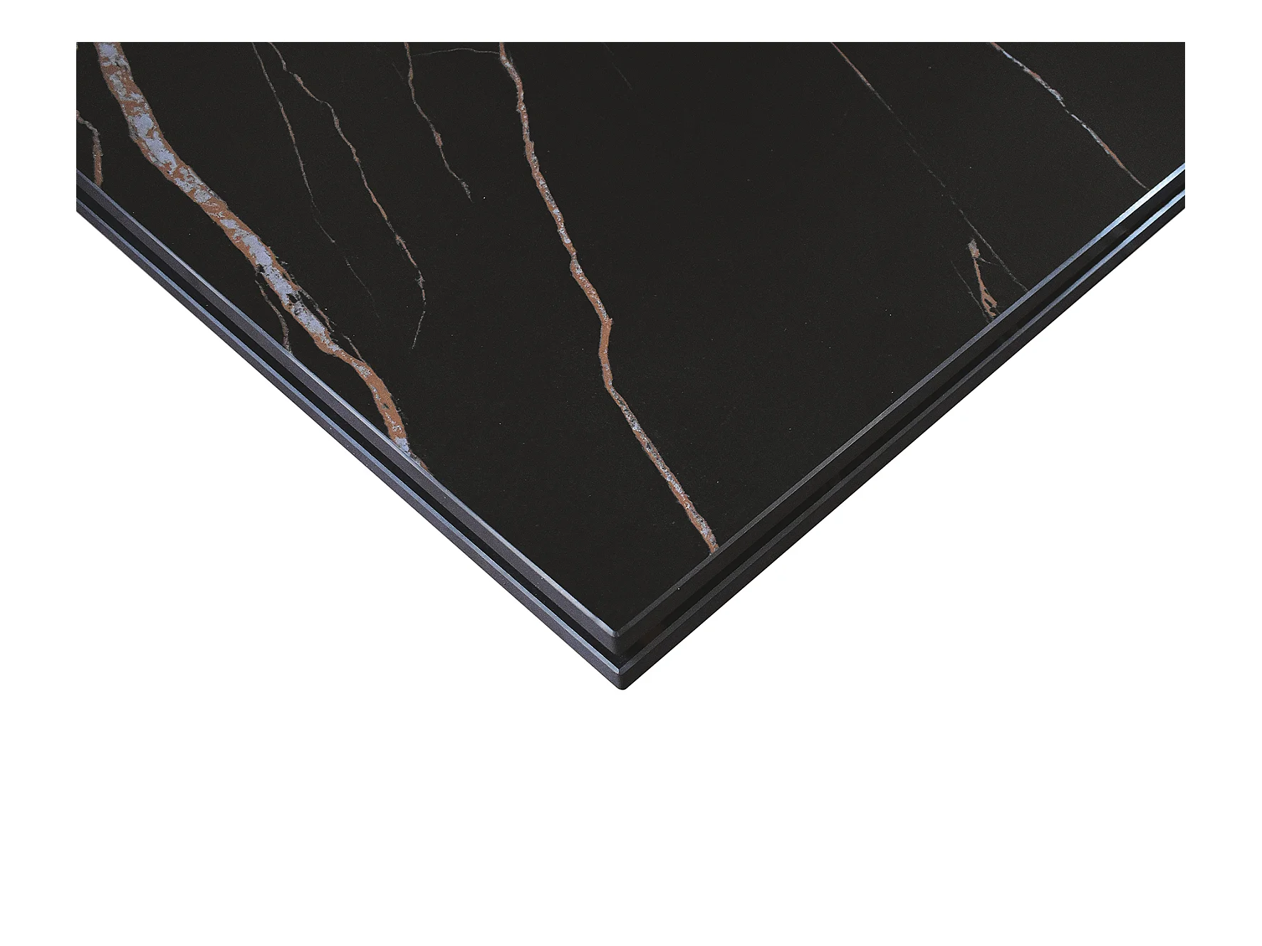 Tavolo allungabile Adriano, Top in ceramica nero golden, gambe in metallo nere a U, 160x90 cm