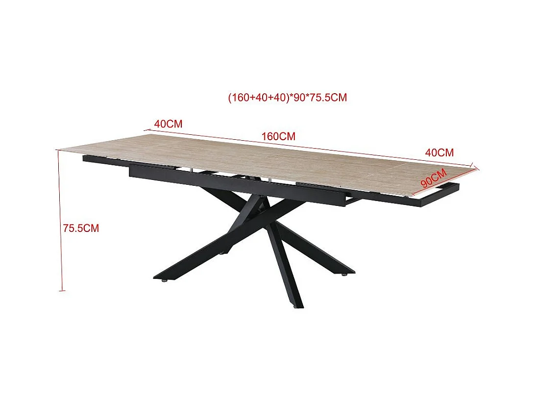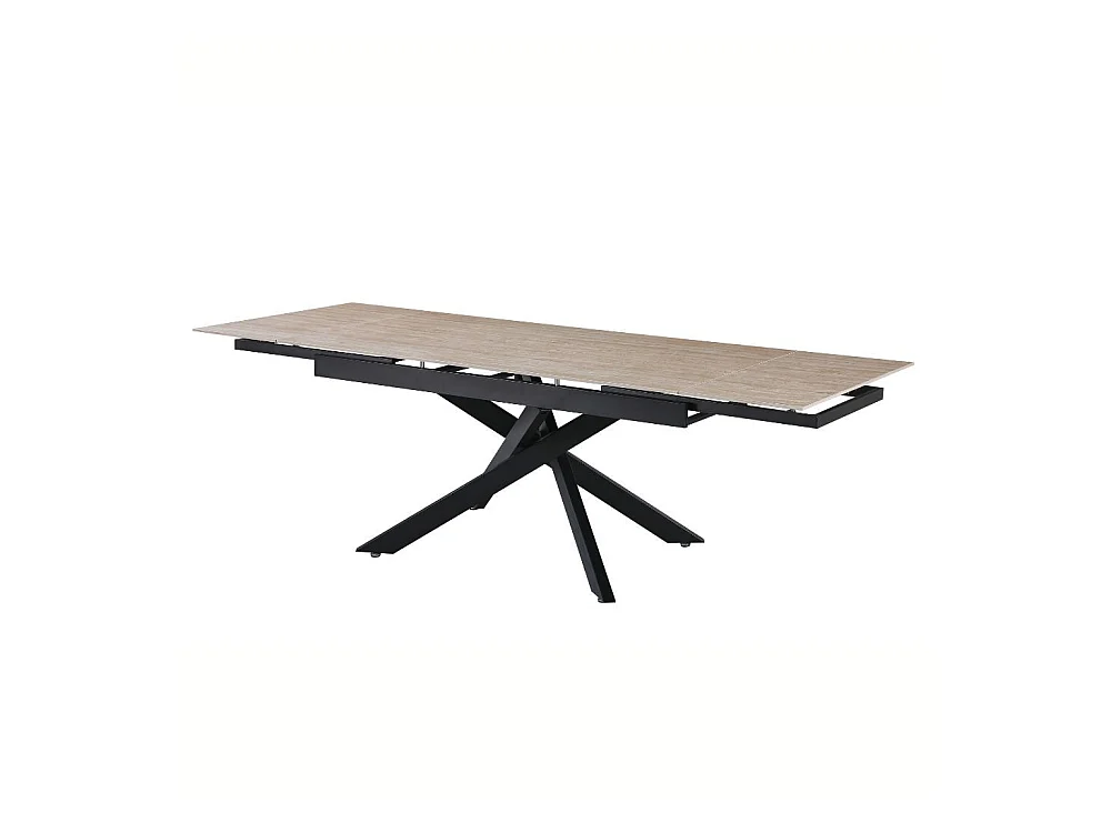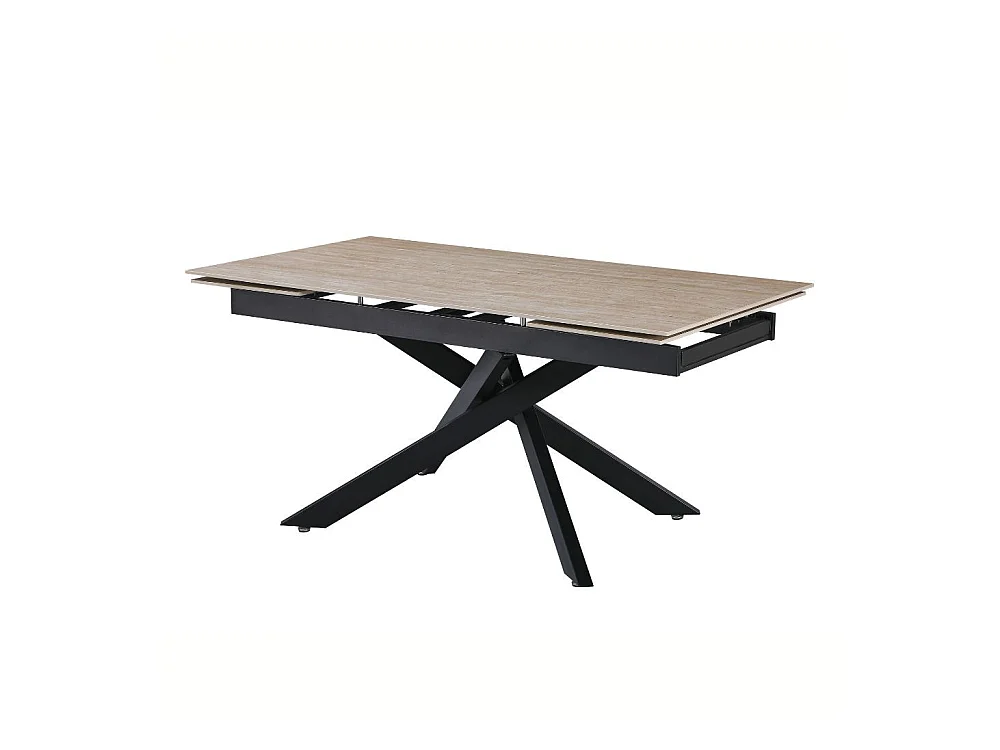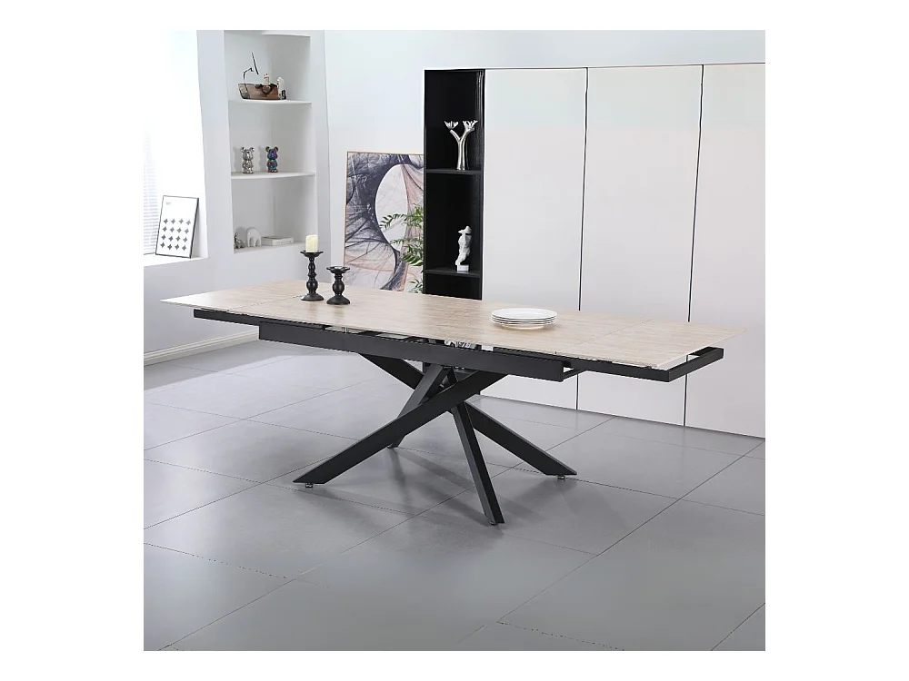 Tavolo allungabile Trivia con piano in ceramica effetto marmo Travertino e gambe in metallo nero 160x90x75.5H