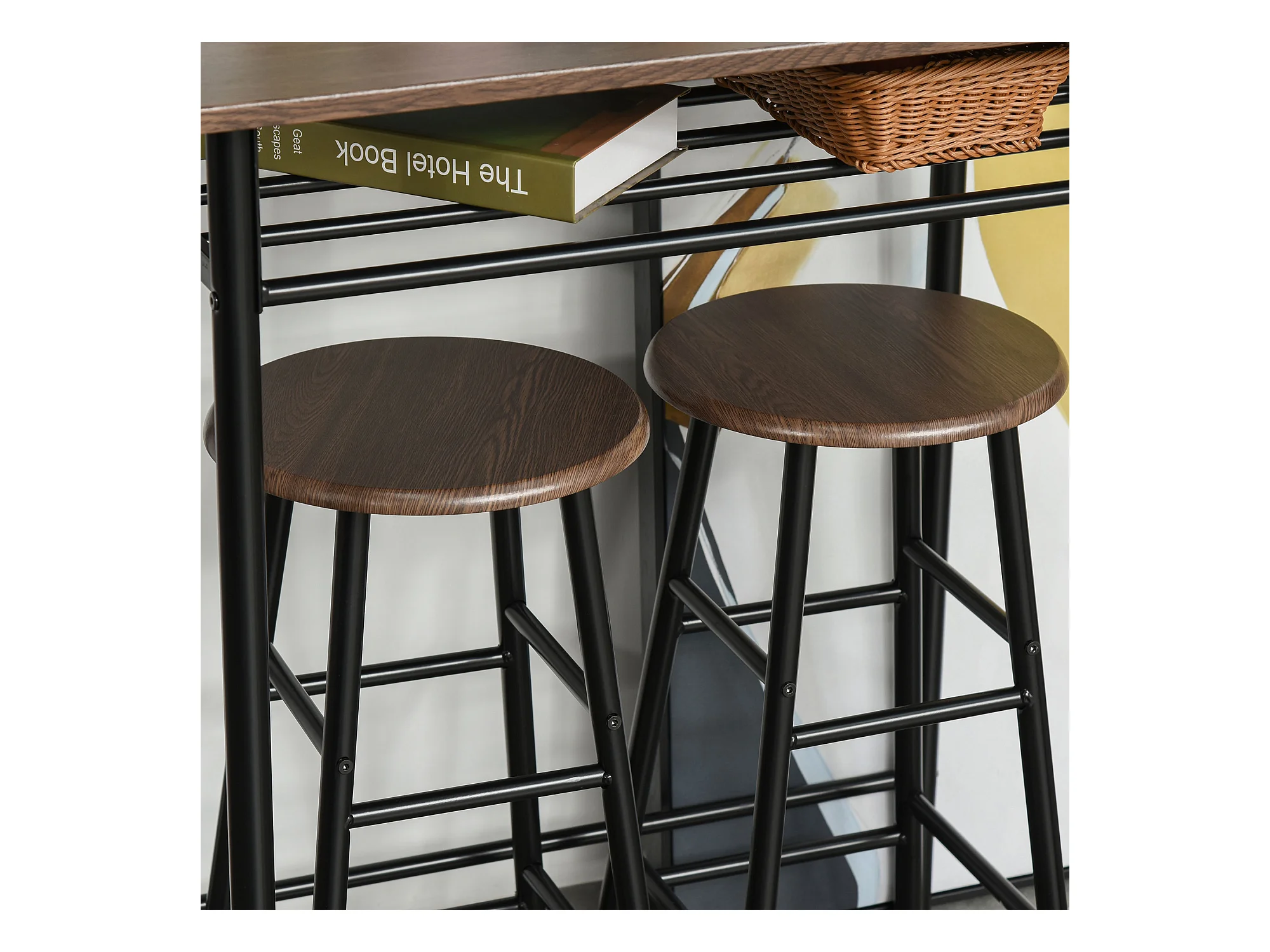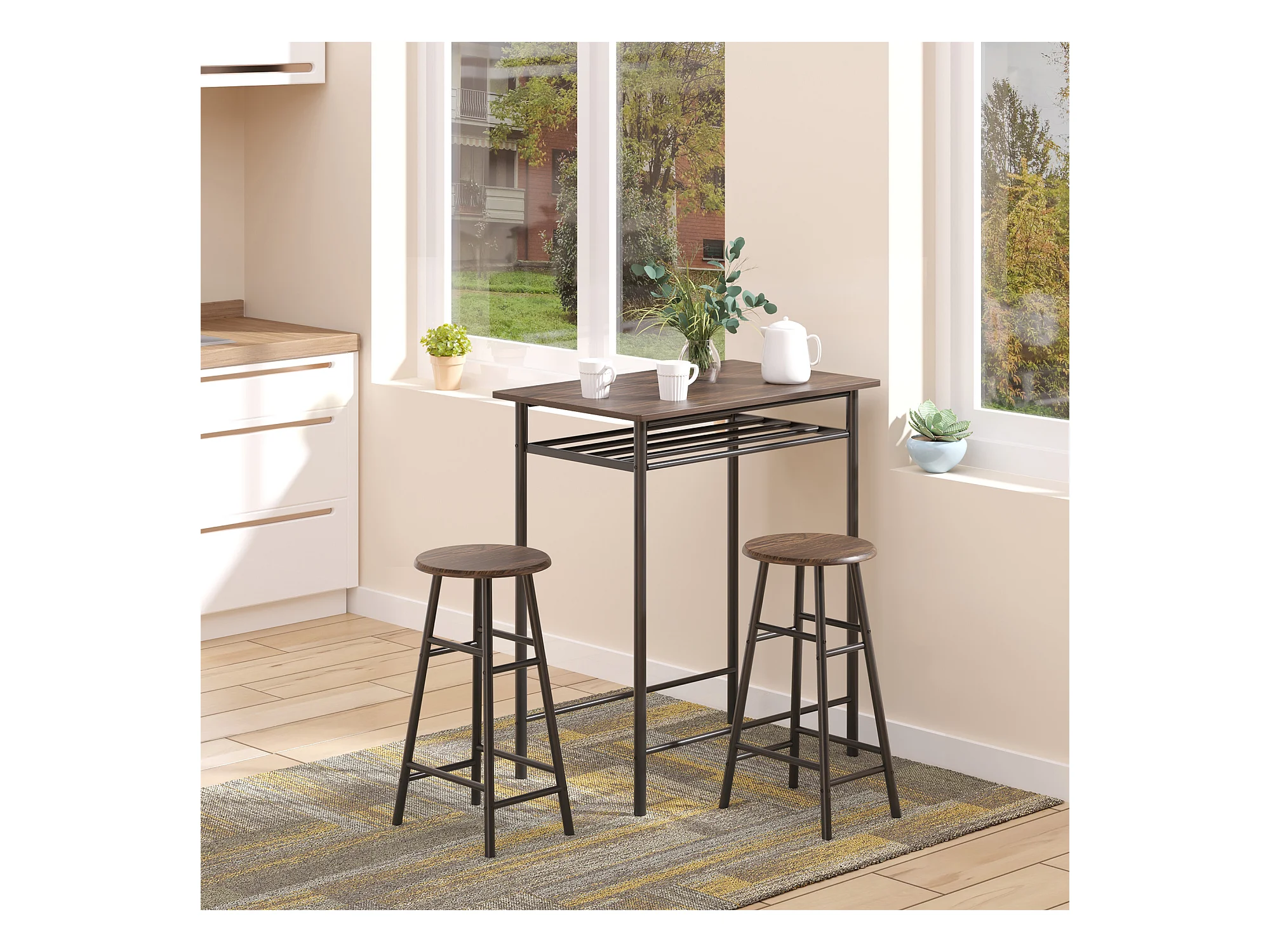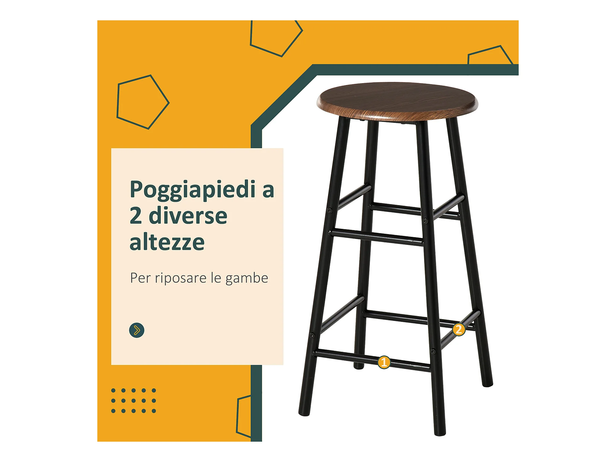 Tavolo alto con 2 sgabelli struttura in acciaio con mensola nero