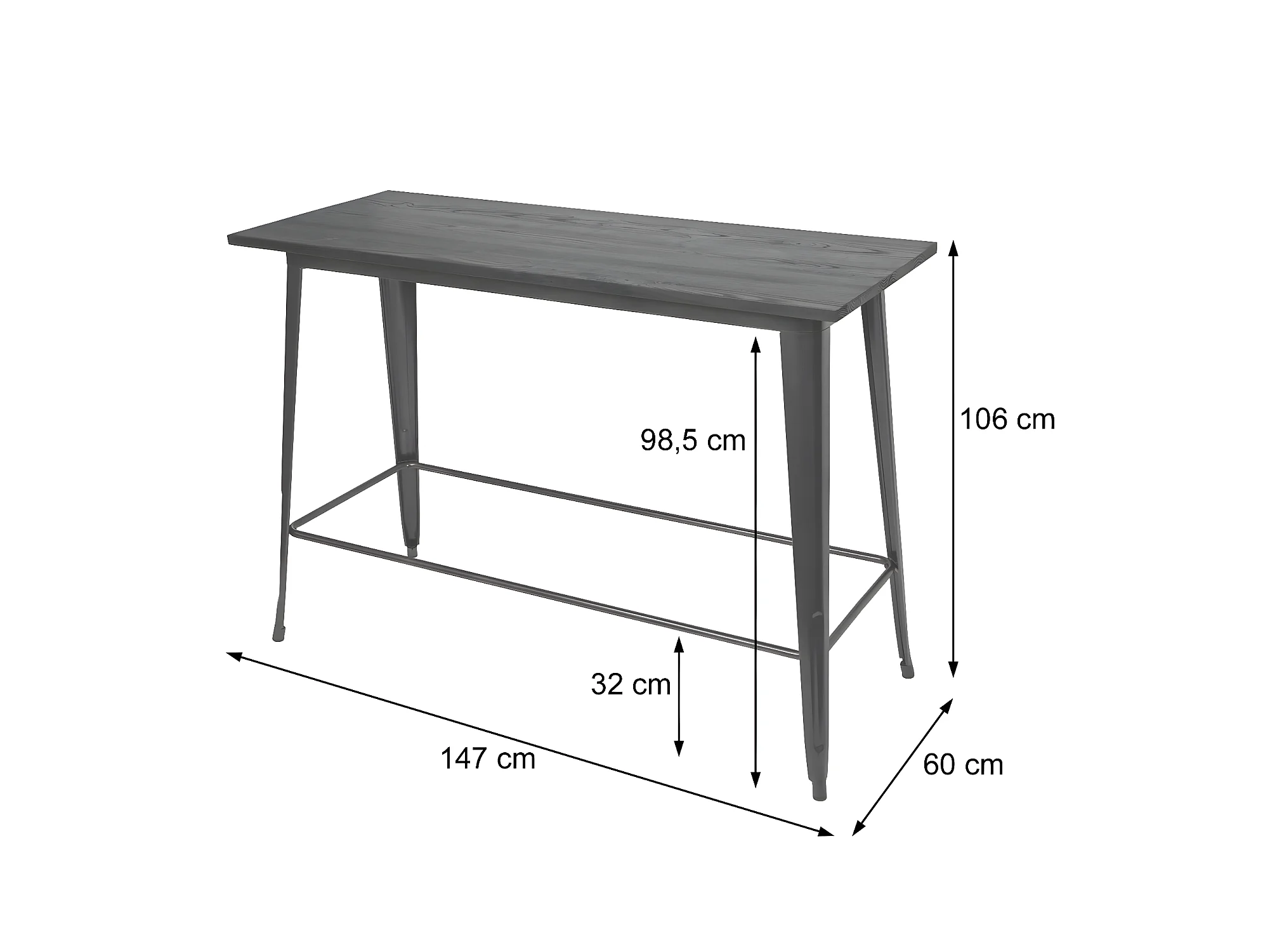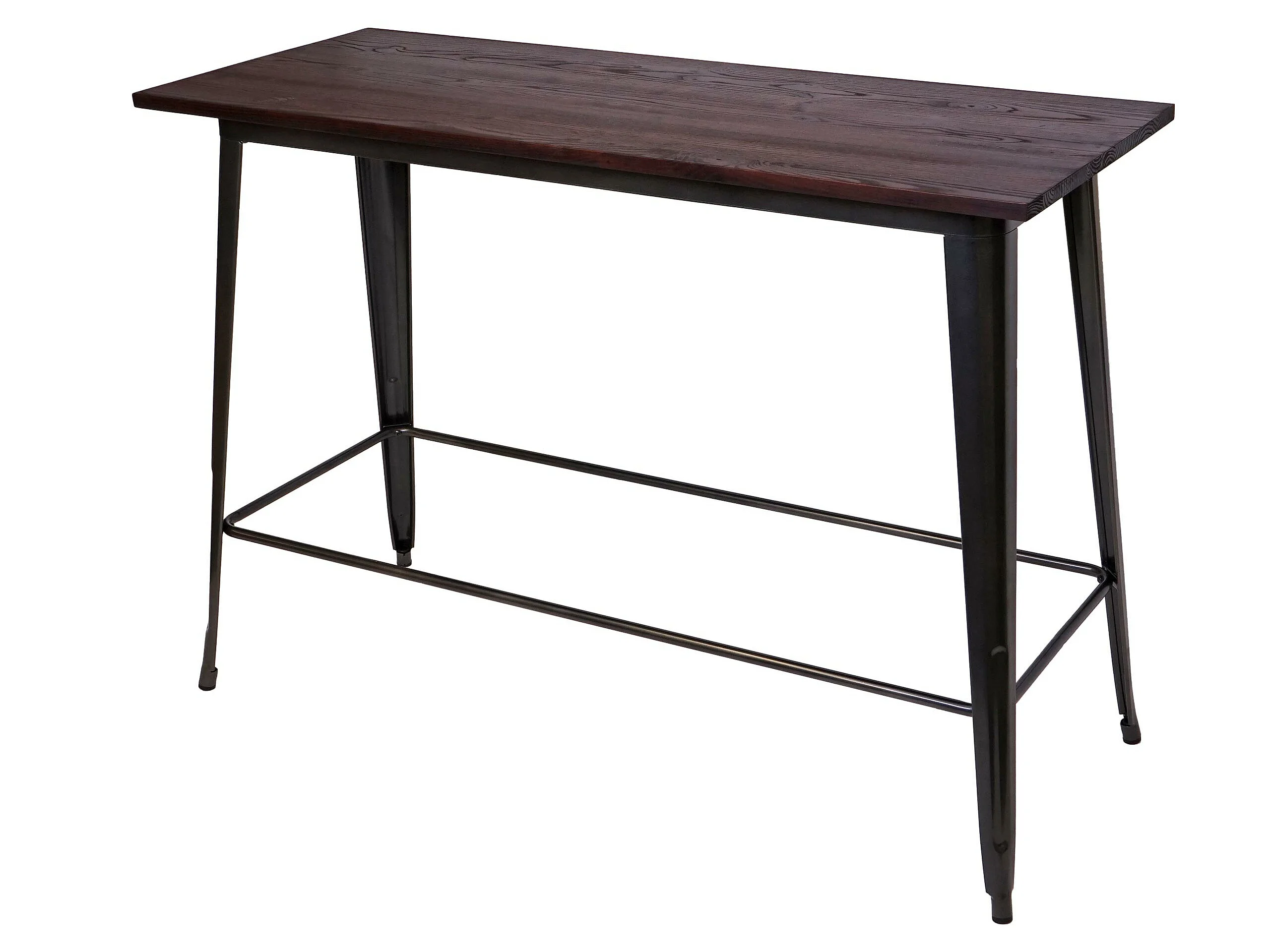 Tavolo alto design industriale MCW-H10 acciaio verniciato legno di olmo marrone