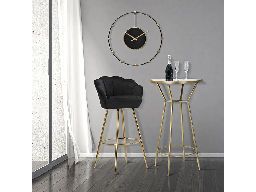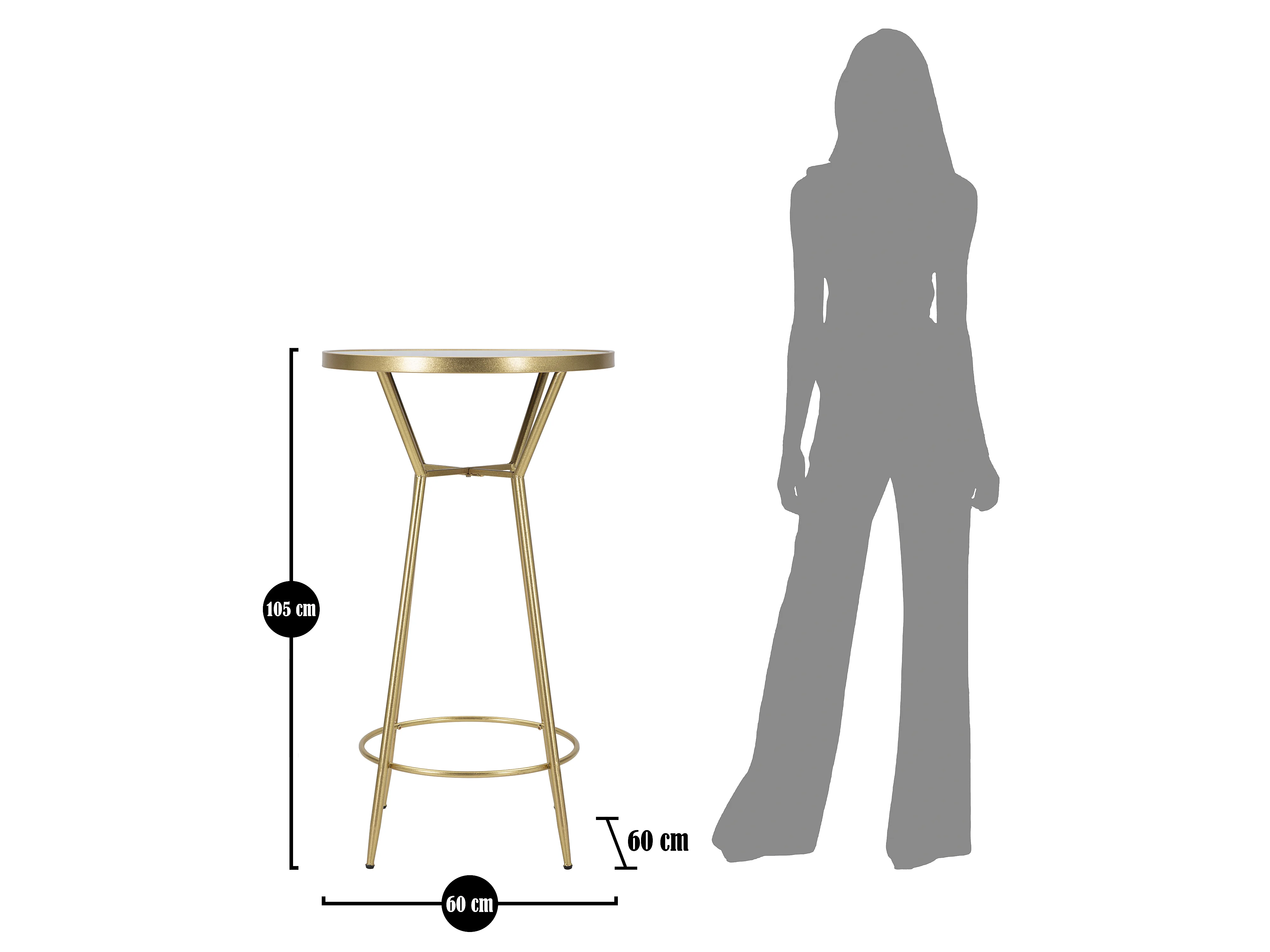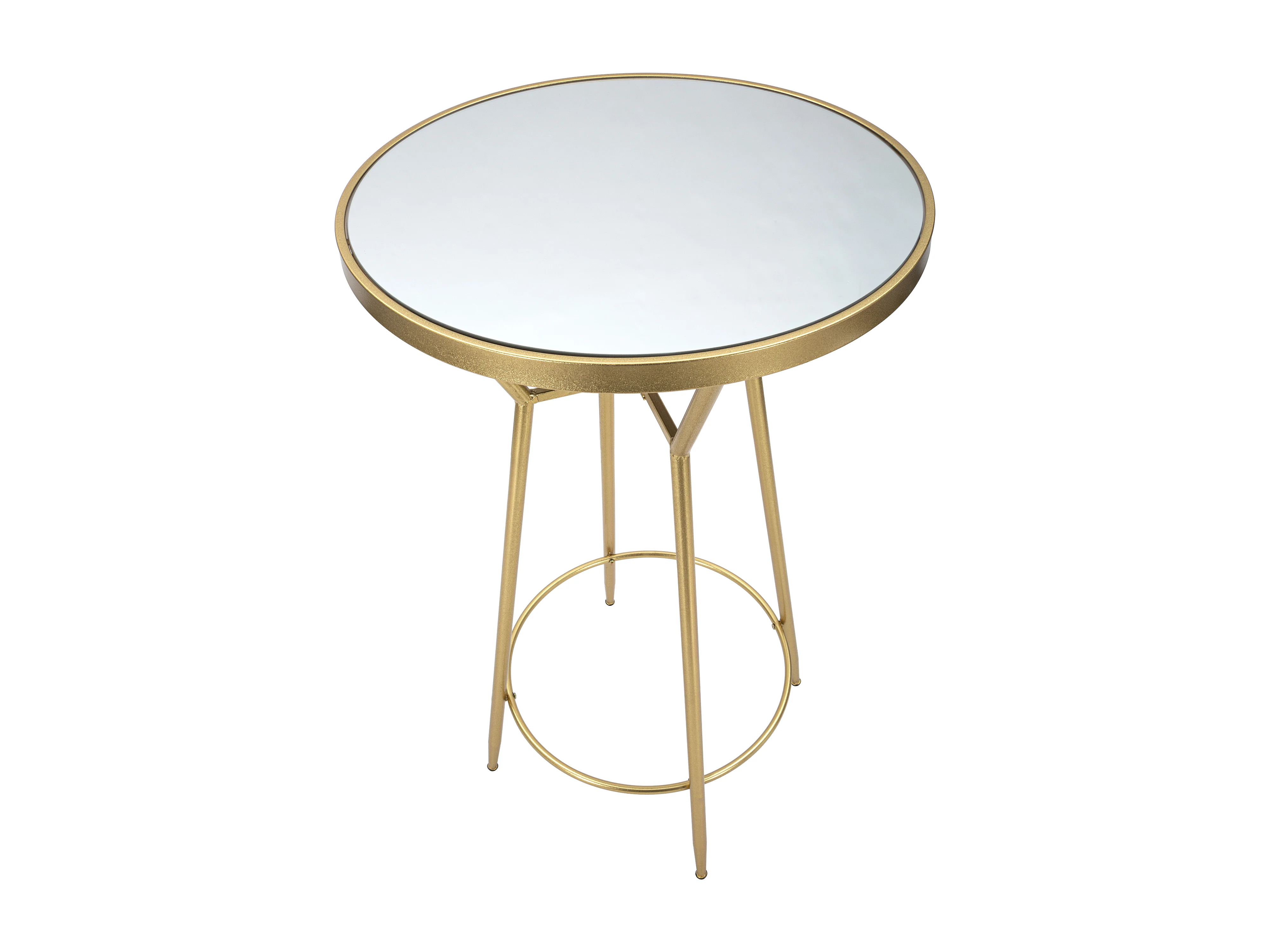 Tavolo bar in metallo dorato con piano in vetro a specchio Ø cm 60x105