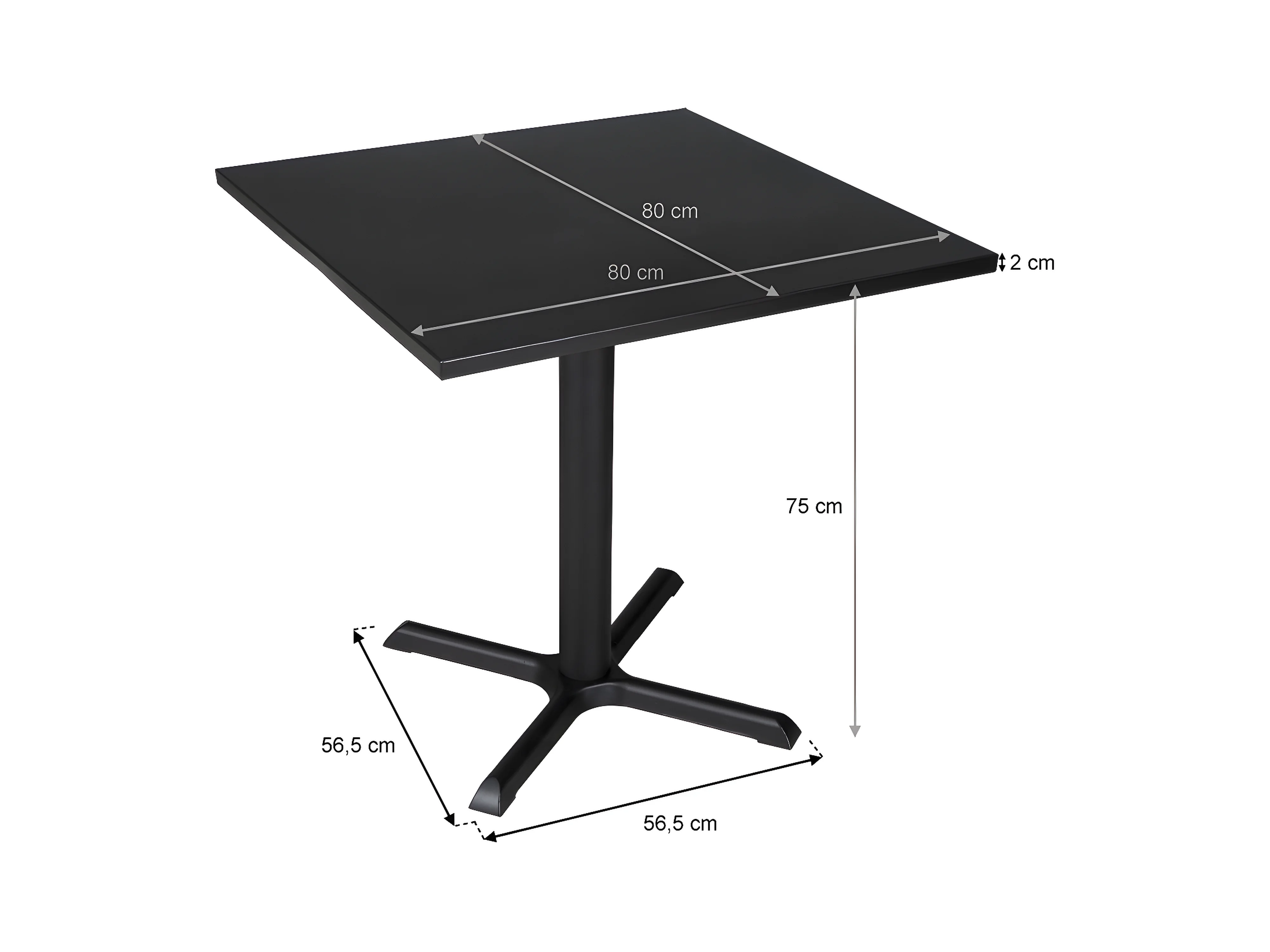 Tavolo bar quadrato 80x80 nero, tavolo da esterno mod. Kevin
