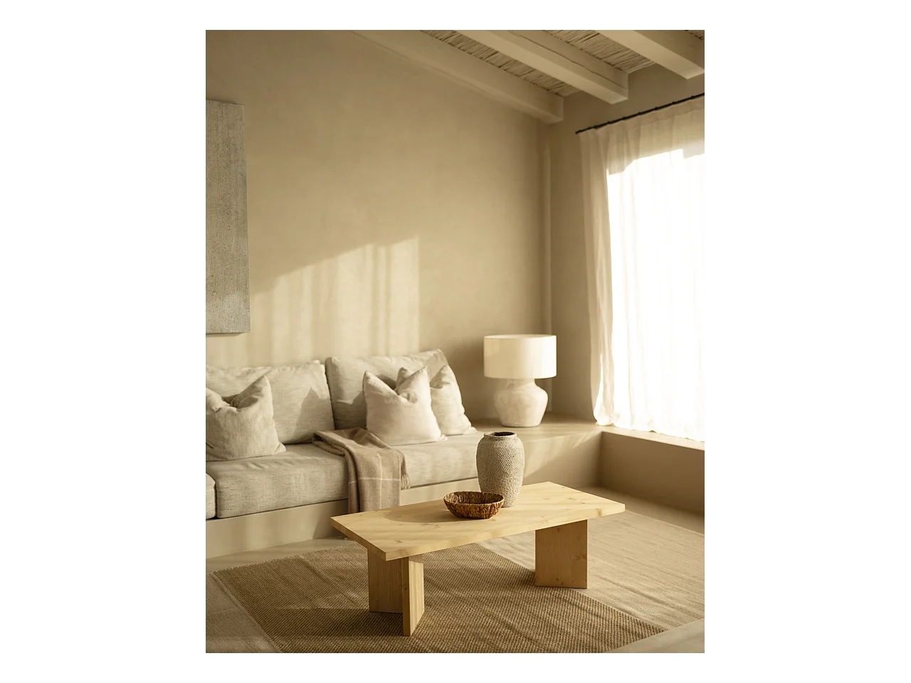 Tavolo basso rettangolare in legno massello in tono bianco 120x45cm - BALI - DECOWOOD