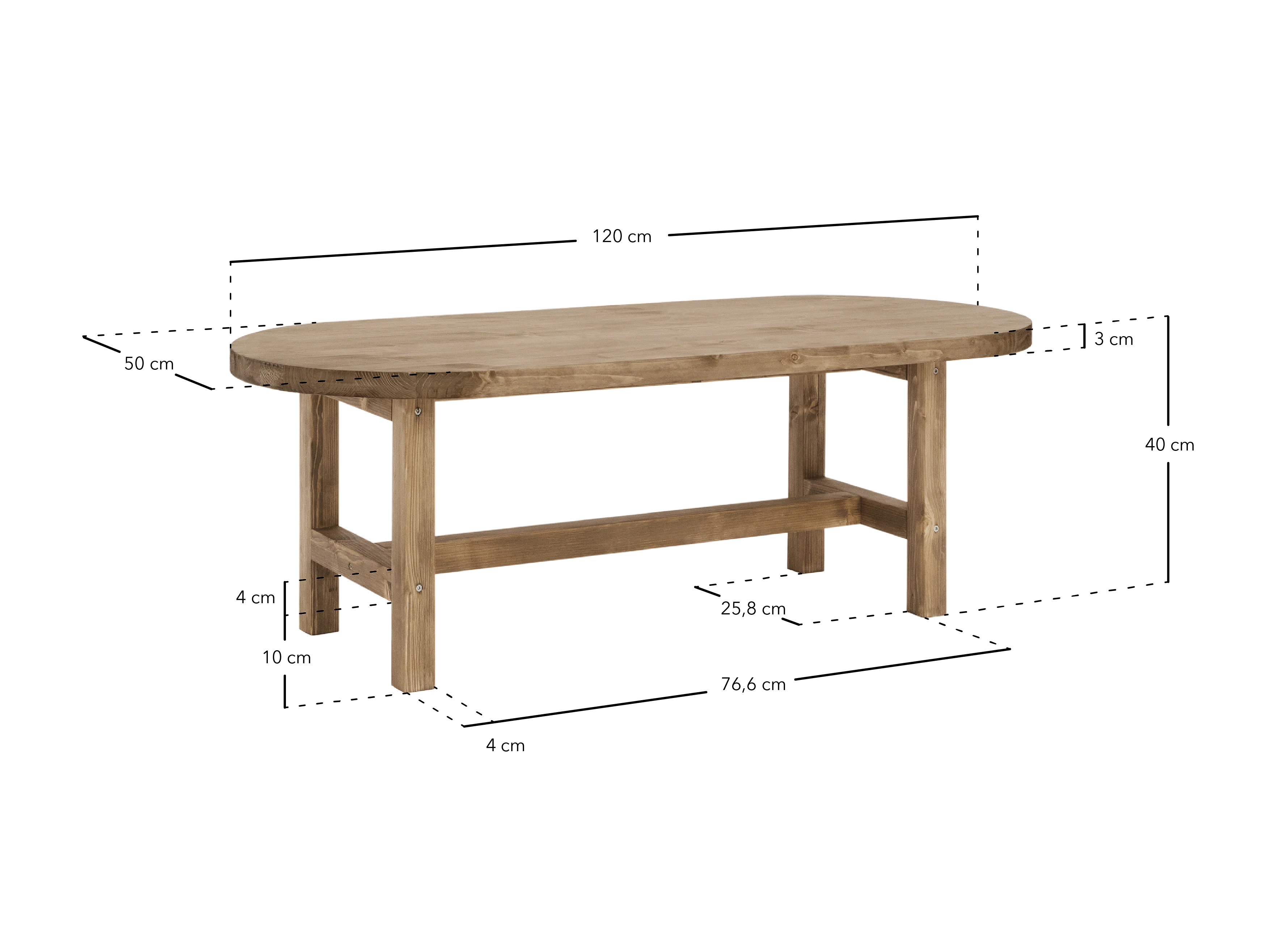 Tavolo basso ovale in legno massello in tono marrone 120x40cm - OLIVIA - DECOWOOD