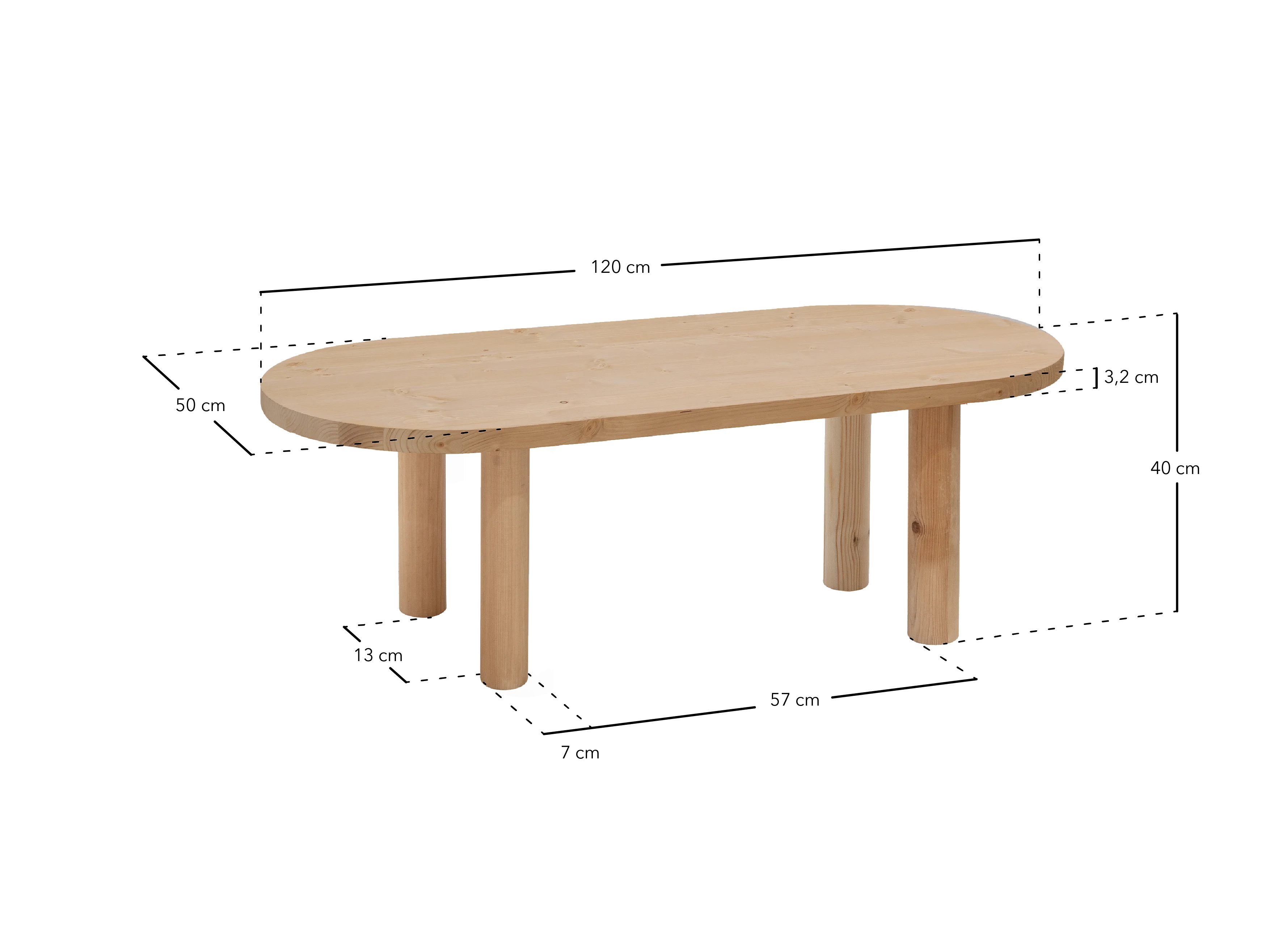 Tavolo basso ovale in legno massello in tono marrone chiaro 120x40cm - GINA - DECOWOOD