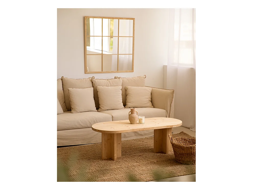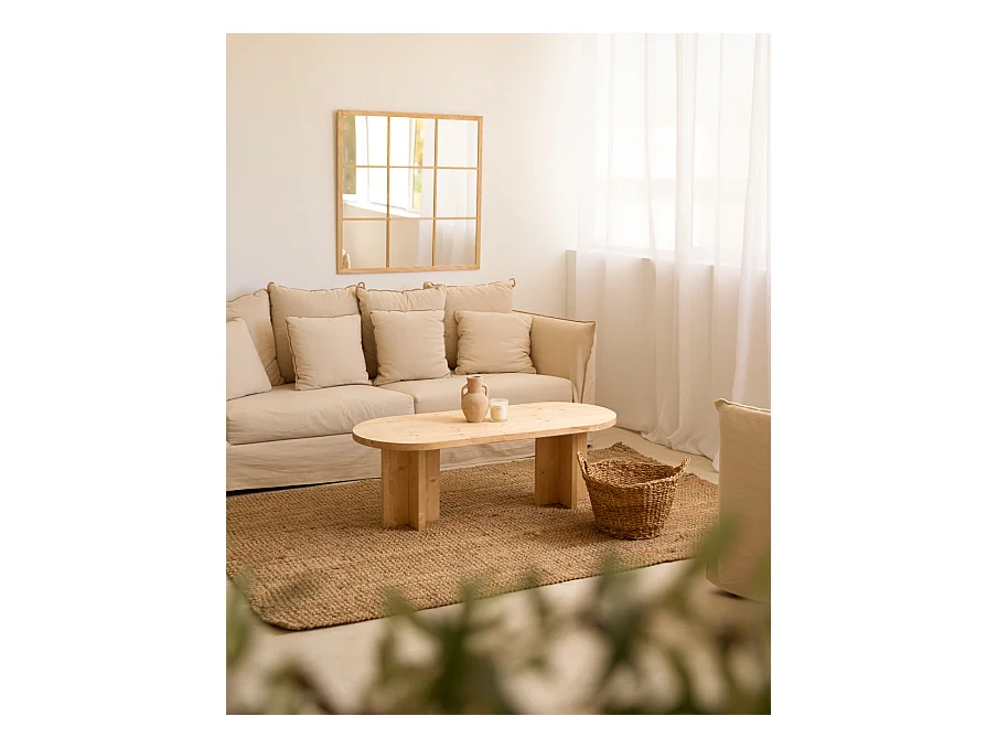 Tavolino basso ovale in legno massello in tono marrone chiaro 120x35cm - BLOOM - DECOWOOD