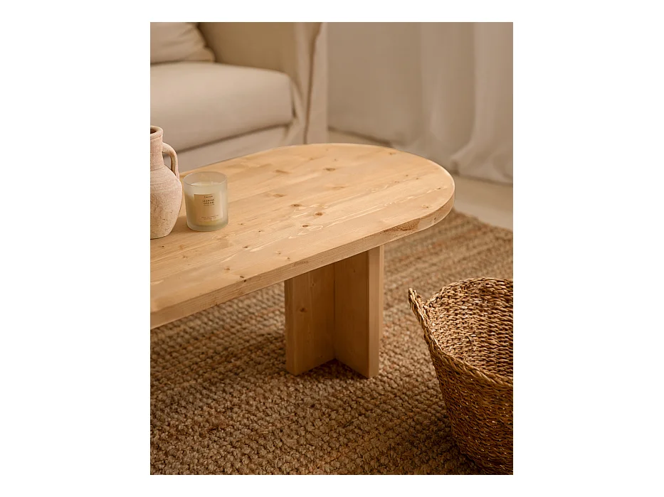 Tavolo basso ovale in legno massello in tono marrone chiaro 120x40cm - TOKYO - DECOWOOD
