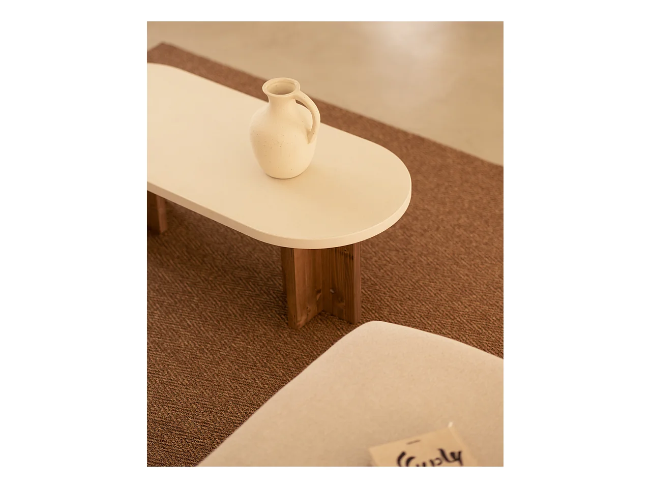 Tavolo basso ovale in microcemento in tono bianco e marrone 120x40cm - TOKYO - DECOWOOD