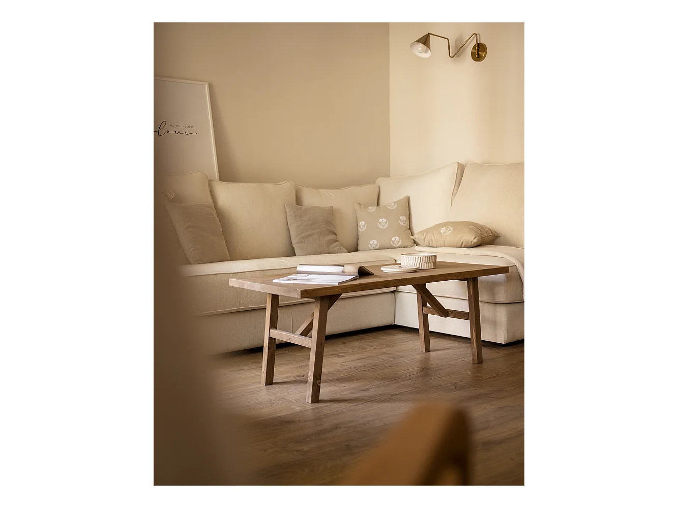 Tavolo basso rettangolare in legno massello in tono bianco 120x45cm - BALI - DECOWOOD