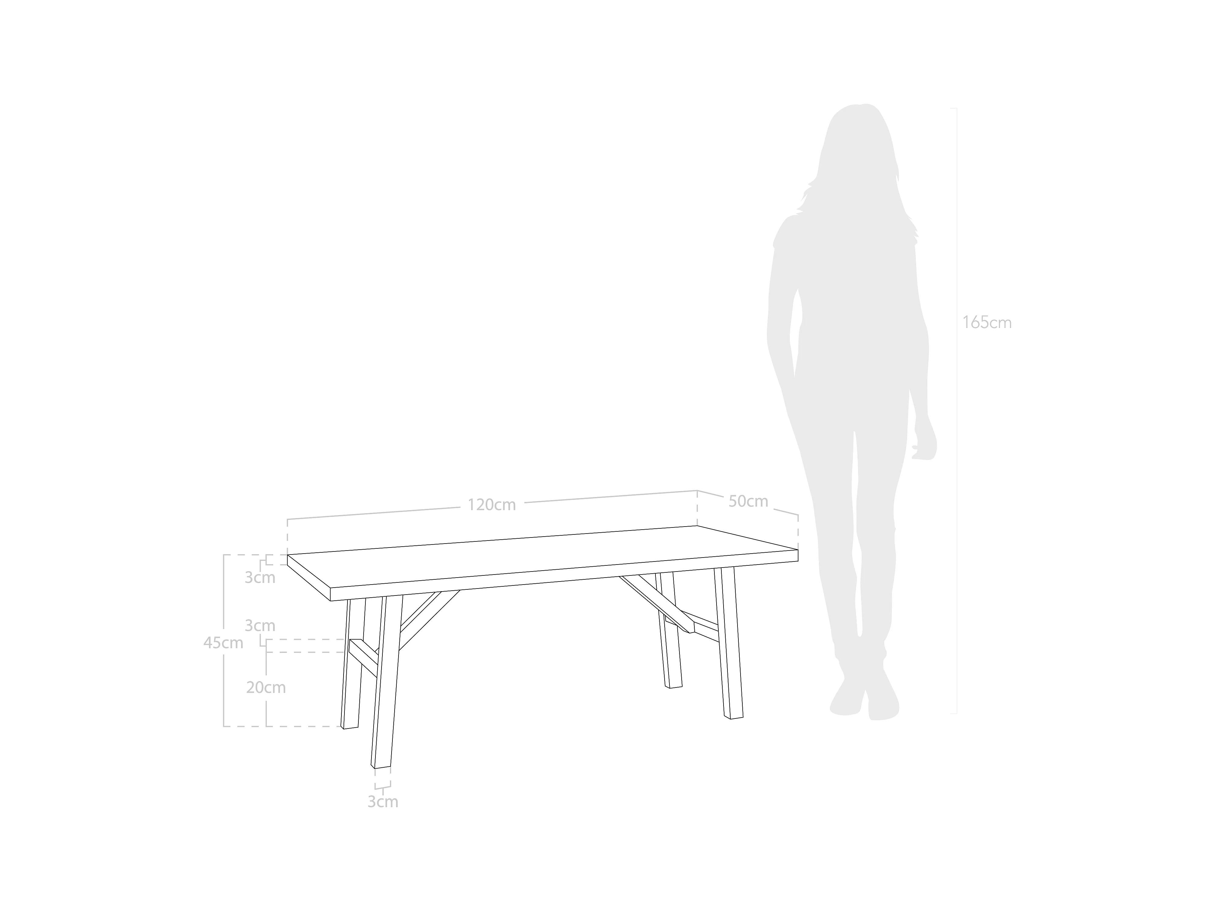 Tavolo basso rettangolare in legno massello in marrone 120x45cm - BIELSA - DECOWOOD