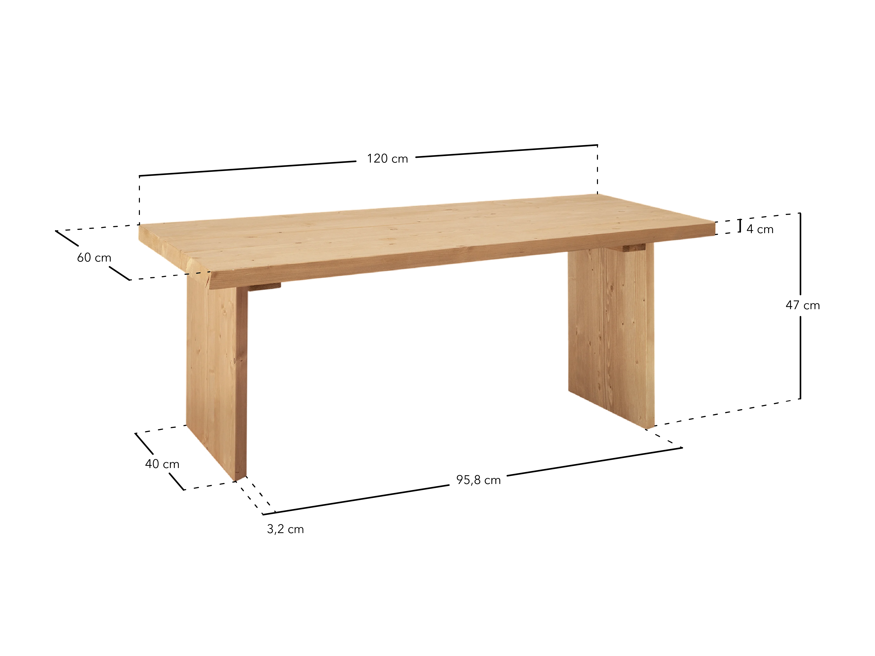 Tavolo basso rettangolare in legno massello in tono naturale 120x47cm - FRIDA - DECOWOOD