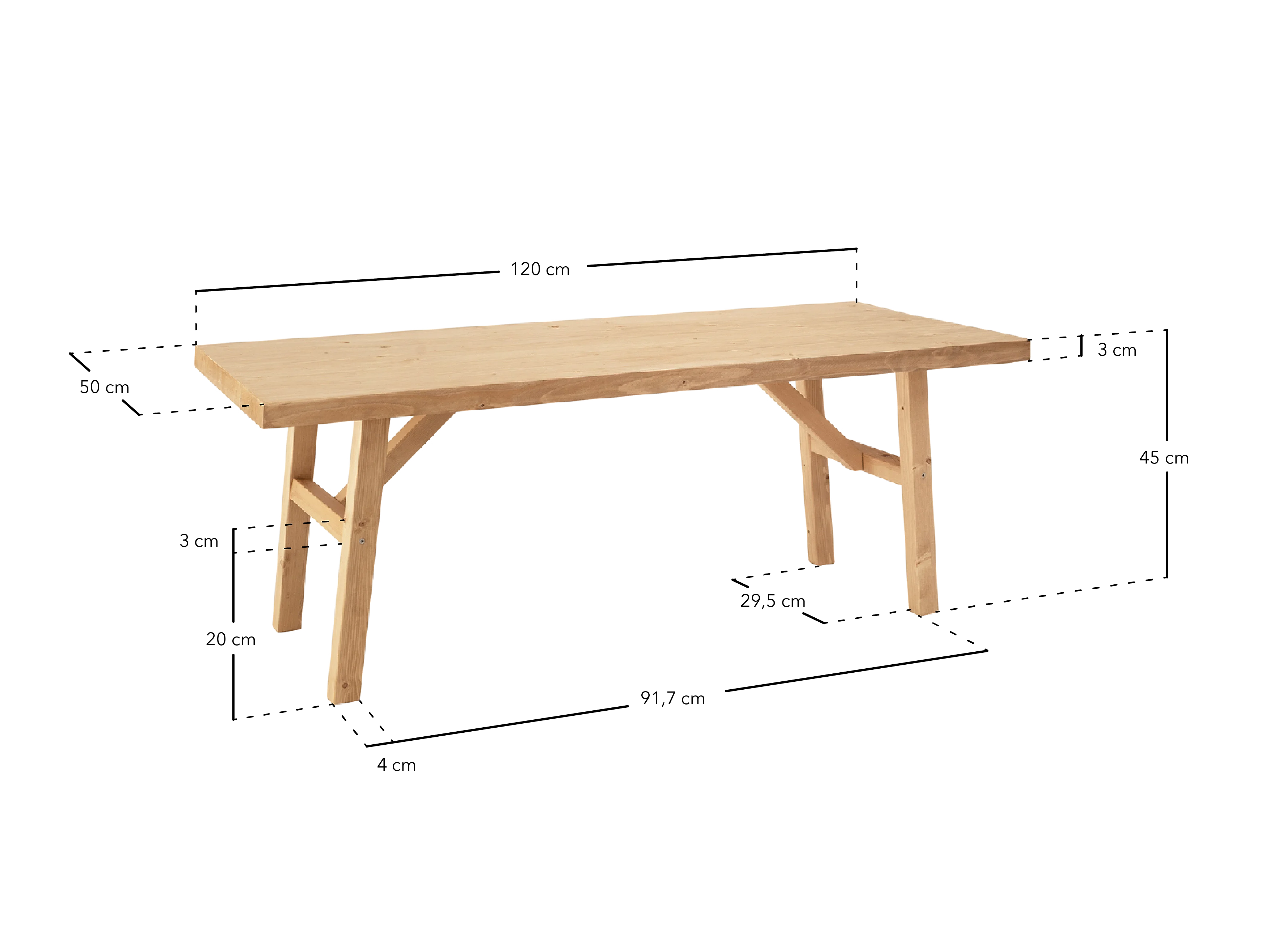 Tavolo basso rettangolare in legno massello in tono verde 120x45cm - SIEP - DECOWOOD