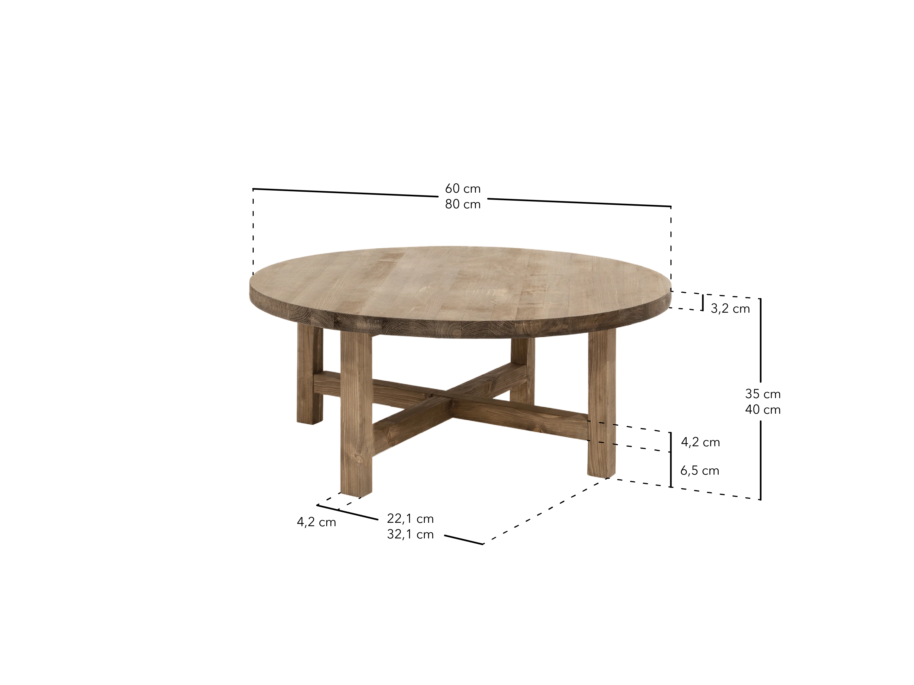 Tavolo basso rotondo in legno massello in tono noce Ø80x35cm - OLIVIA - DECOWOOD
