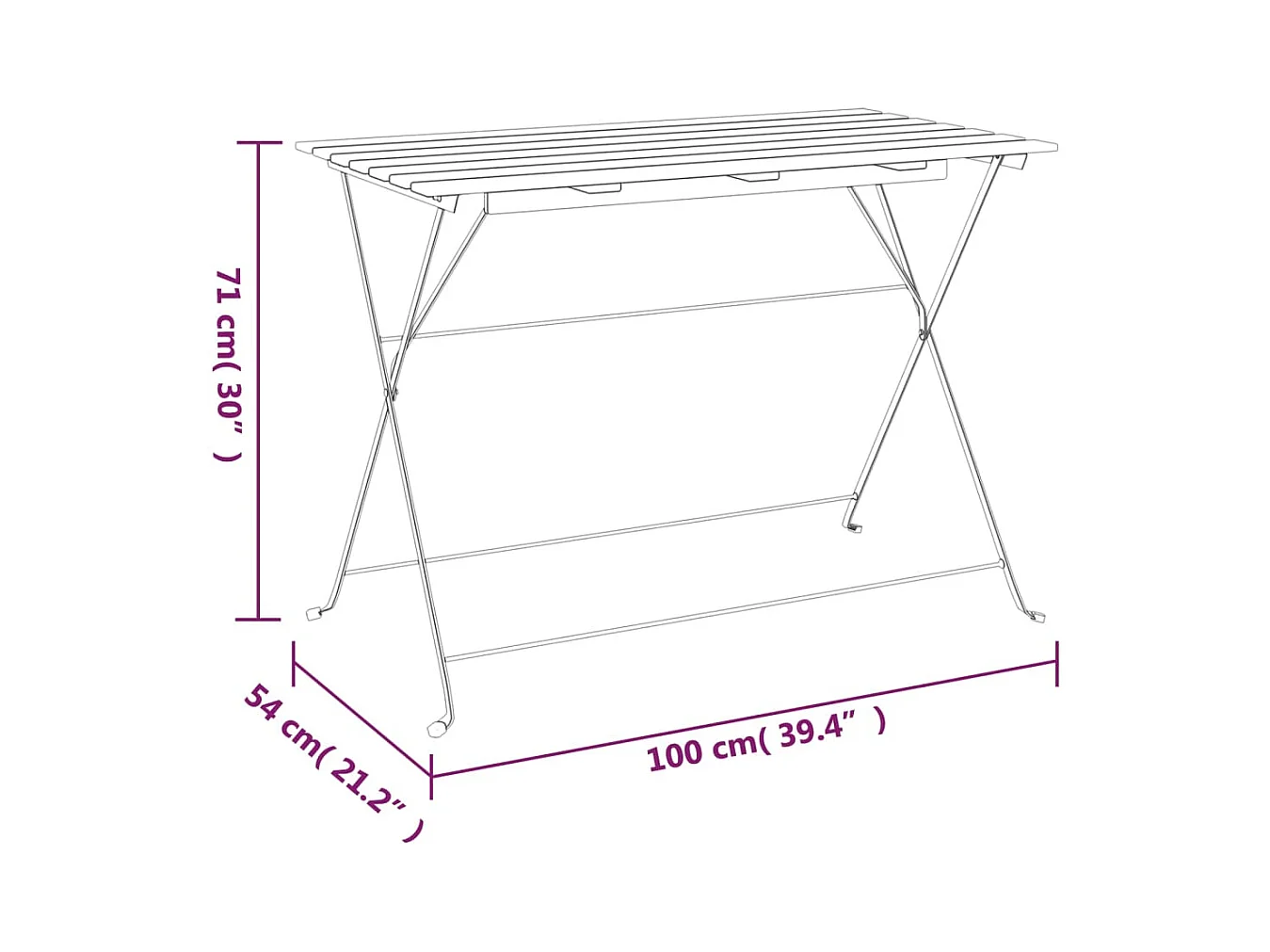 Tavolo Bistrò Pieghevole 100x54x71 cm Massello Acacia e Acciaio