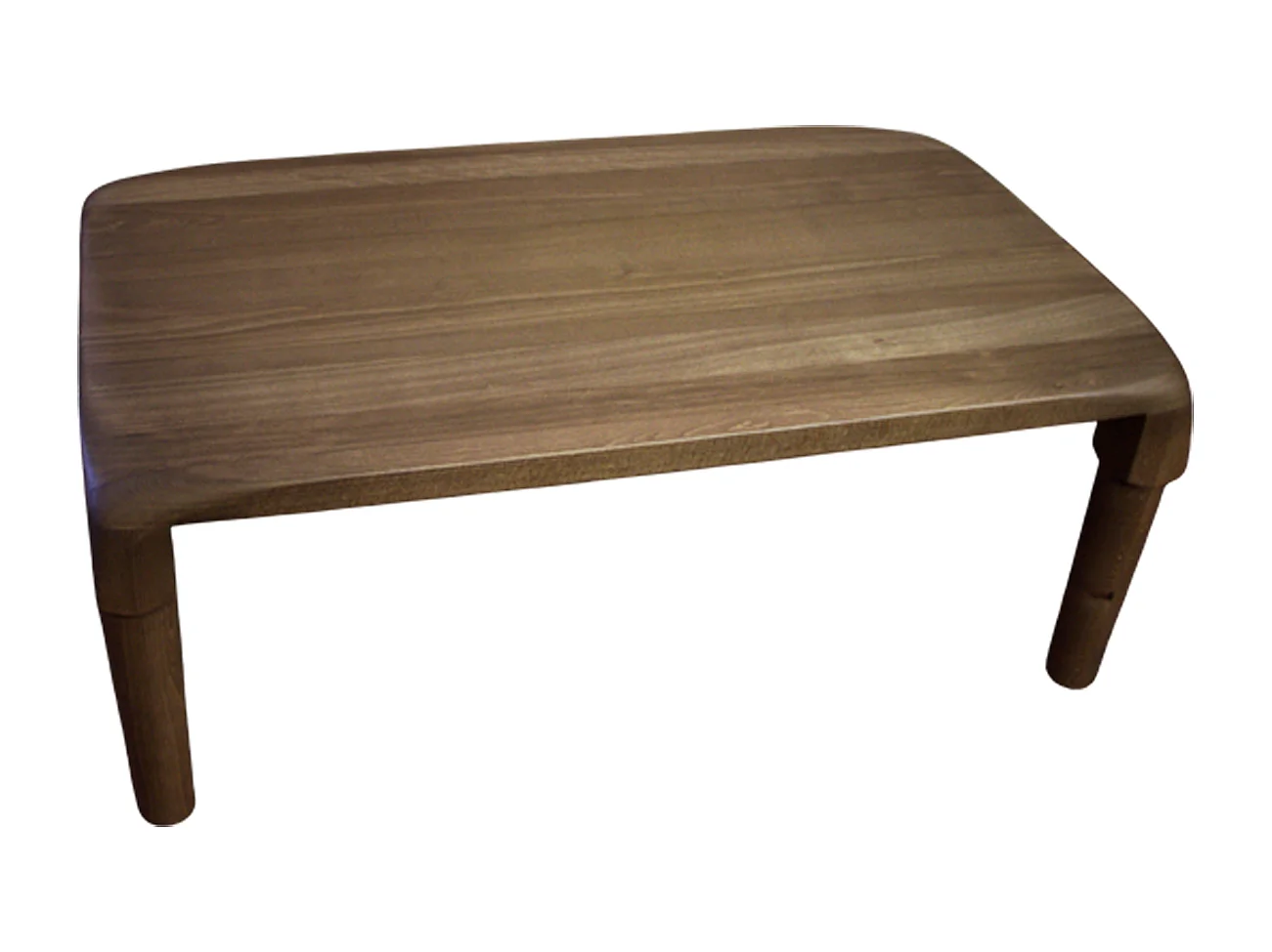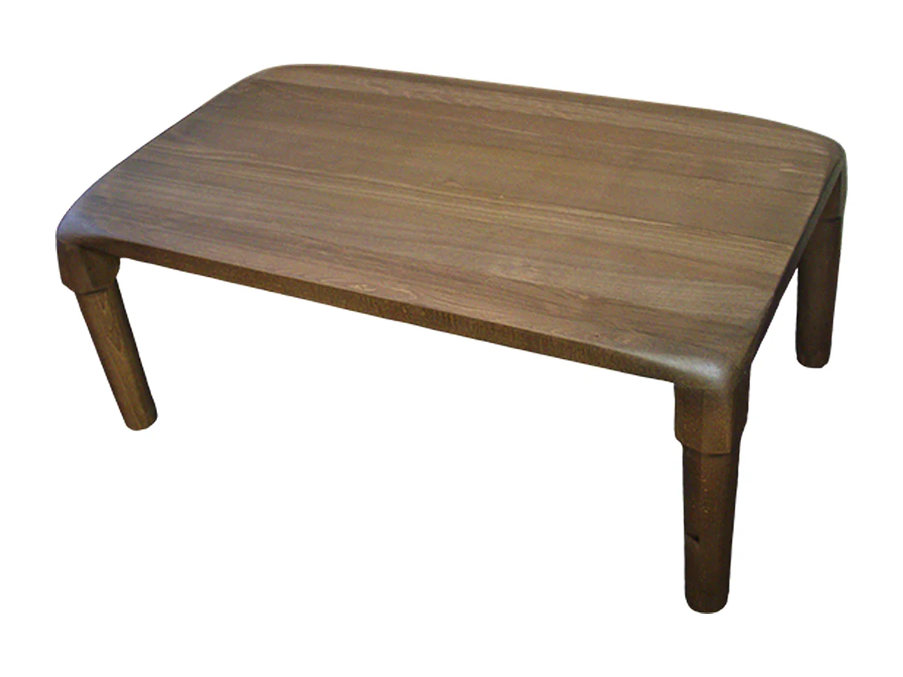 Tavolo club artigianale in legno massello di faggio marrone scuro con bordi stondati e gambe abbinate