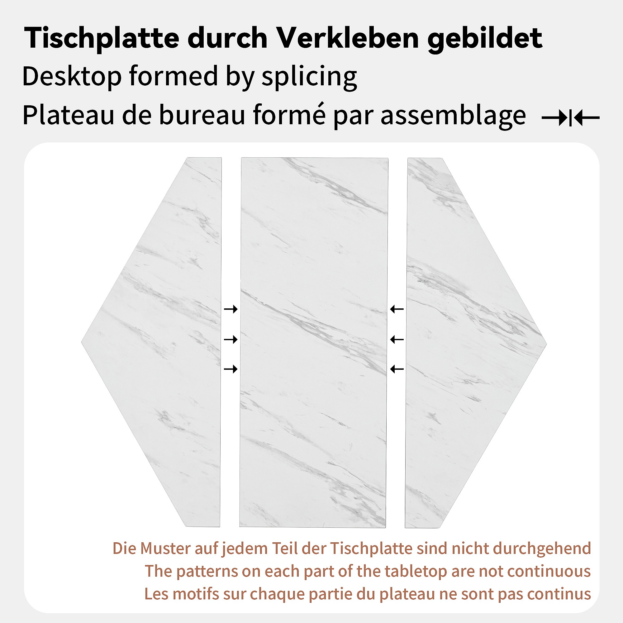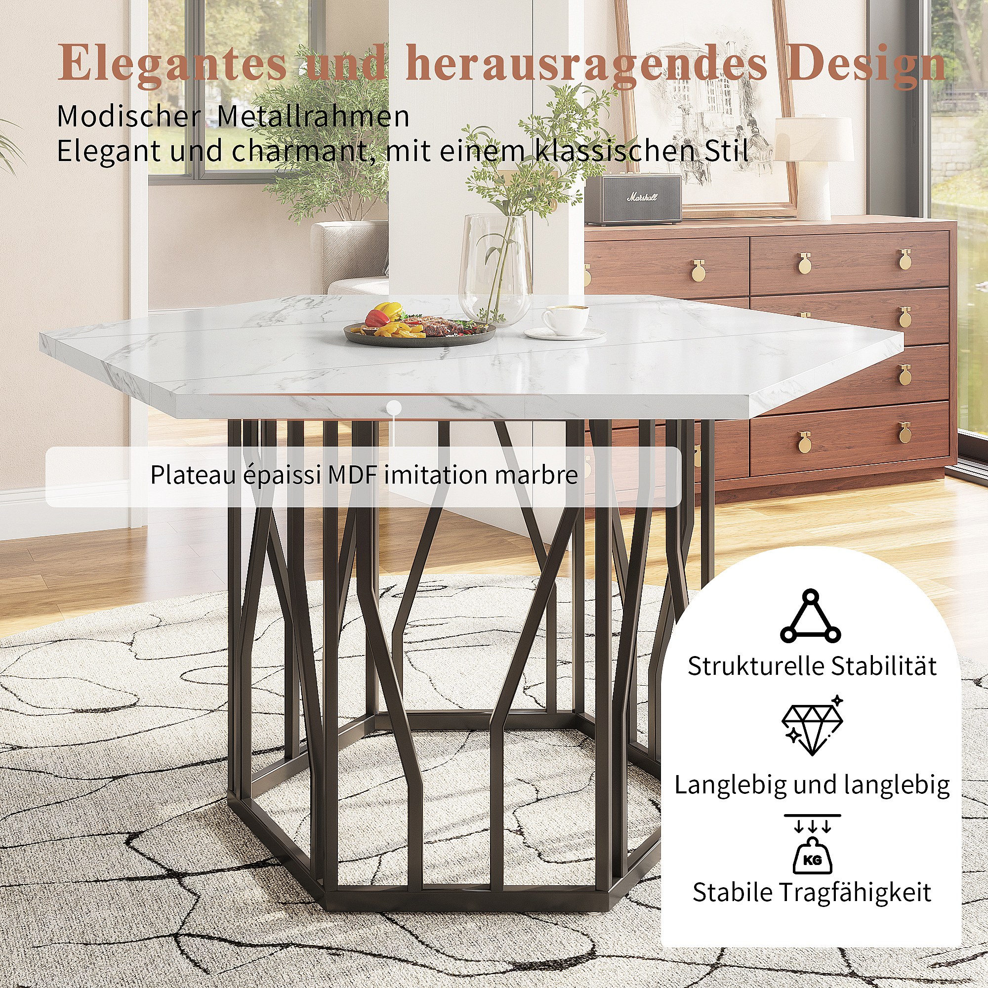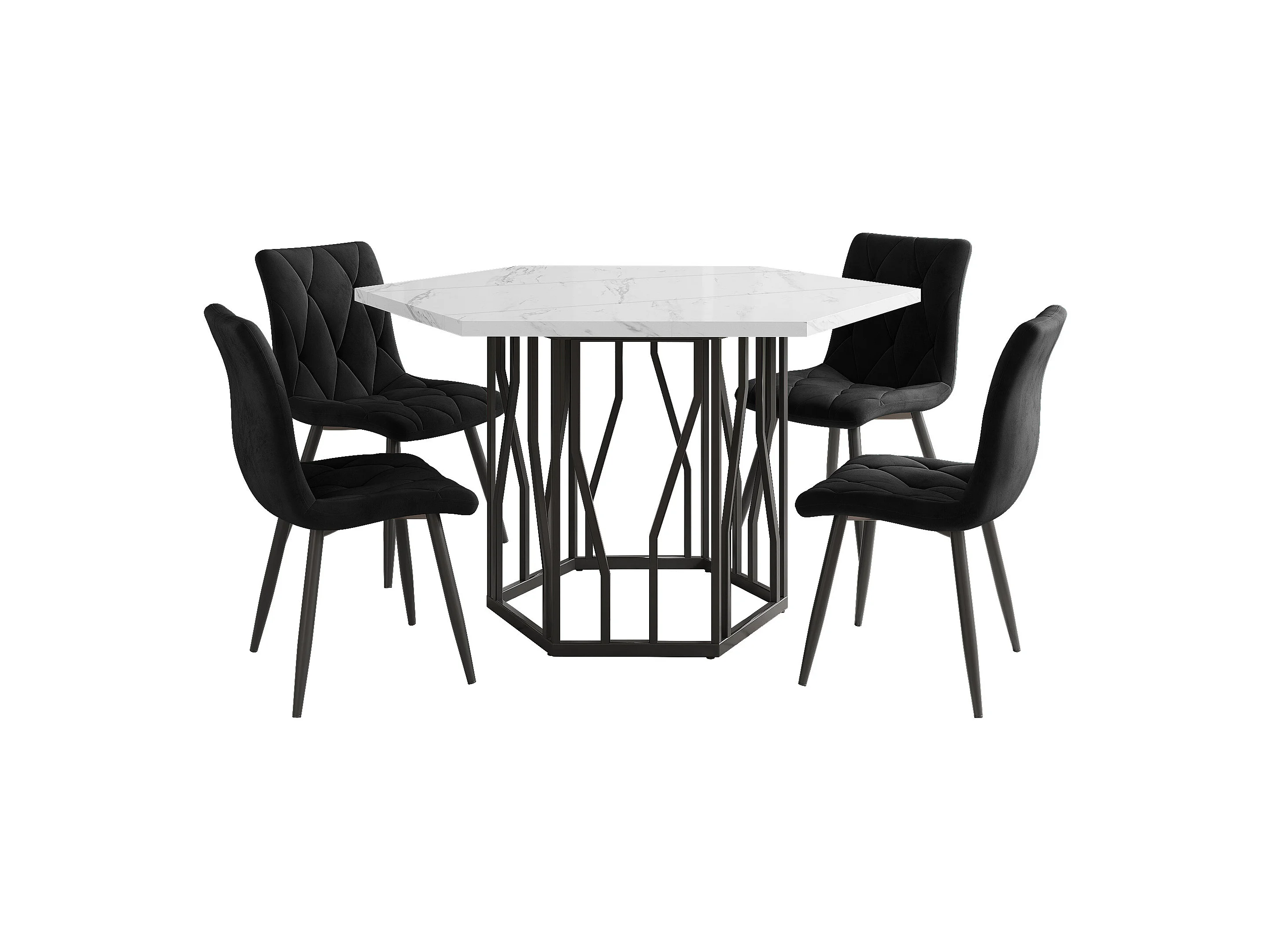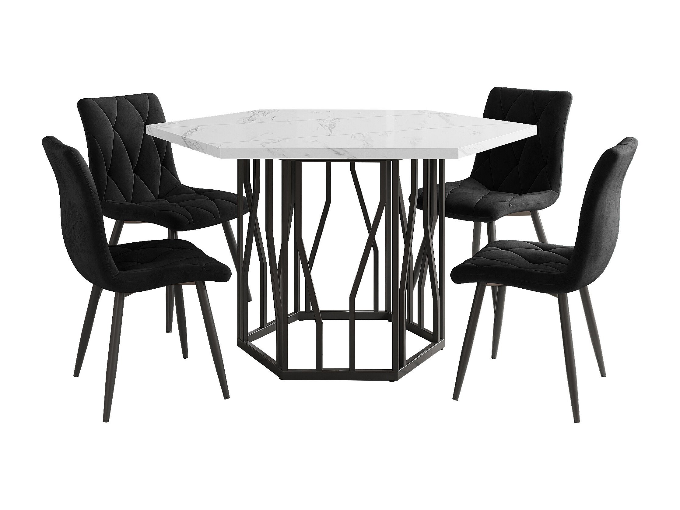 Tavolo completo esagonale marmo 115,5x100 cm MDF metallo + 4 chaise longue velluto nero salle à manger
