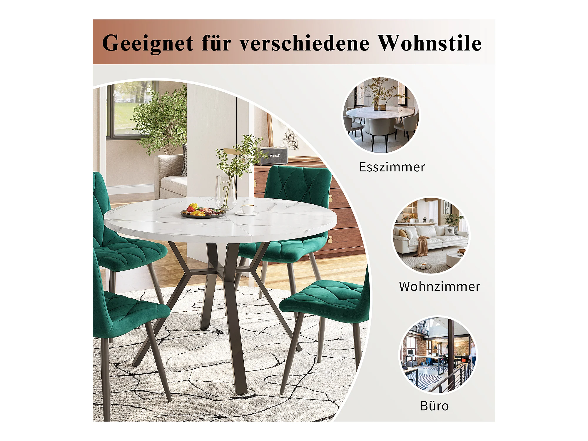 Tavolo completo ronde marmo MDF metallo 100 cm + 4 chaise longue velluto verde salle à manger