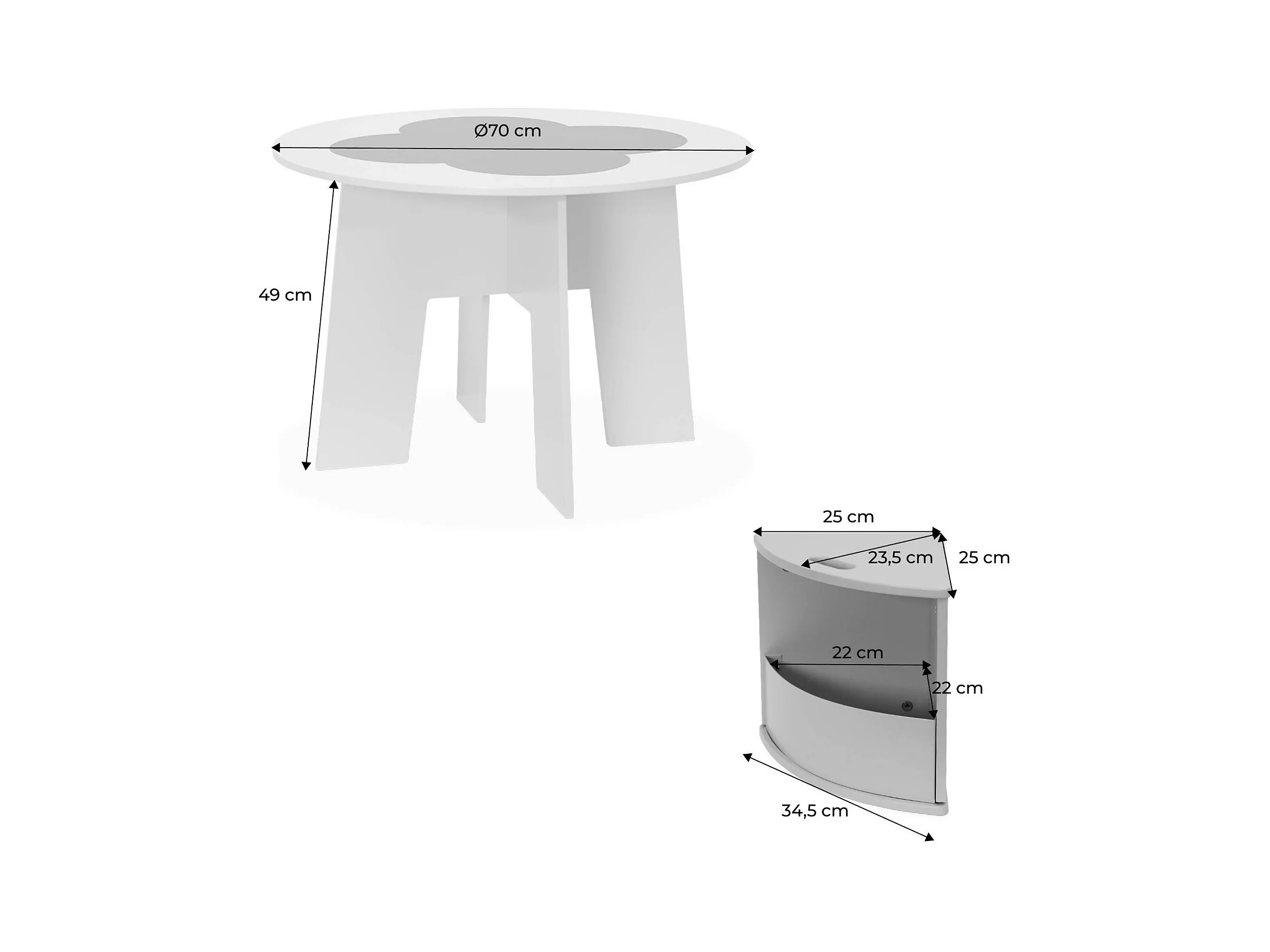 Tavolo con ardesia e 4 sedie con contenitore per bambini rosa