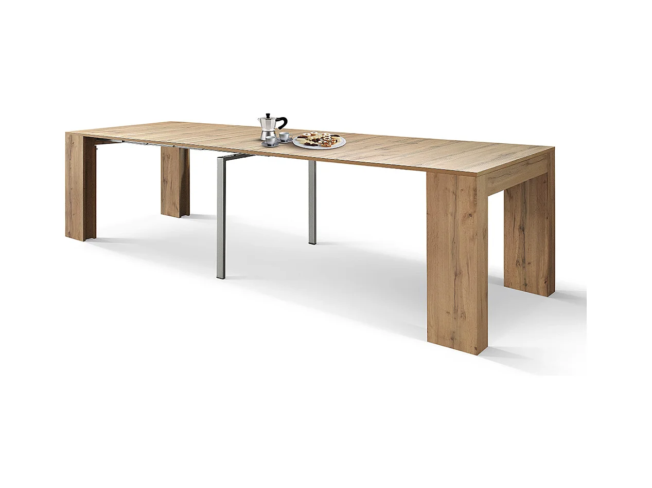 Tavolo Consolle Allungabile Carine, Rovere rustico, Made in Italy, da 45 a 300 cm