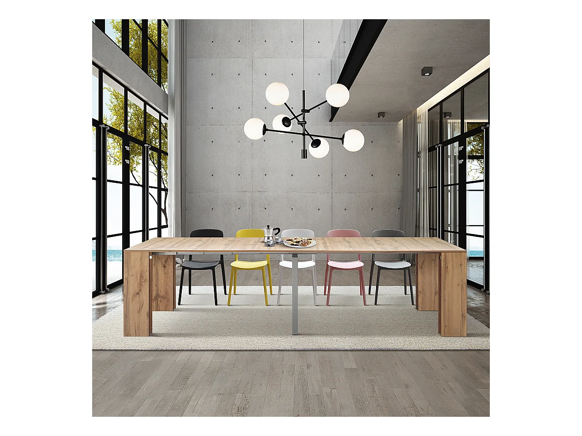 Tavolo Consolle Allungabile con porta prolunghe Elvire, Rovere Rustico, Made in Italy, da 45 a 300 cm