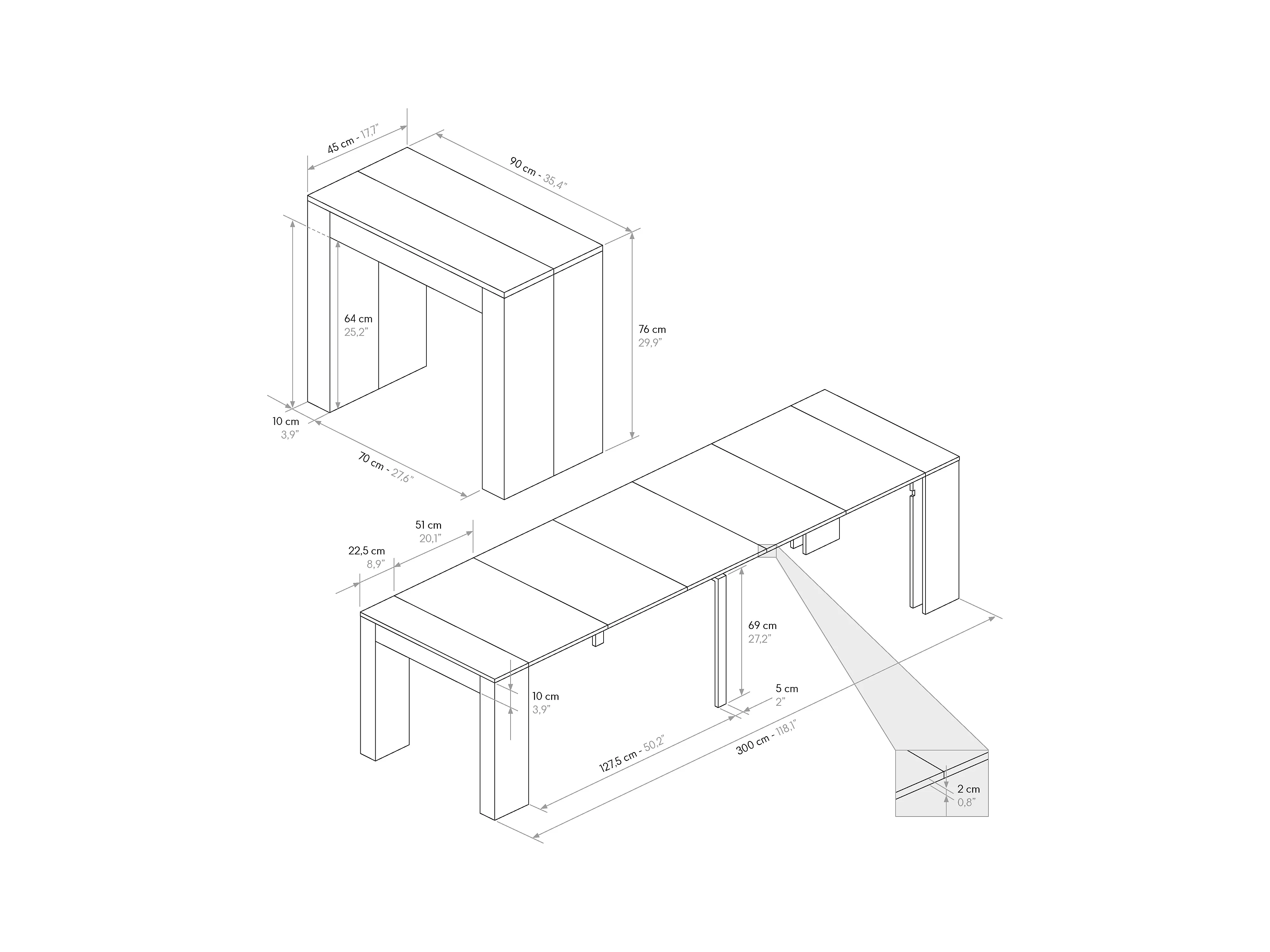 Tavolo Consolle Allungabile Margot, Olmo perla, Made in Italy, da 45 a 300 cm