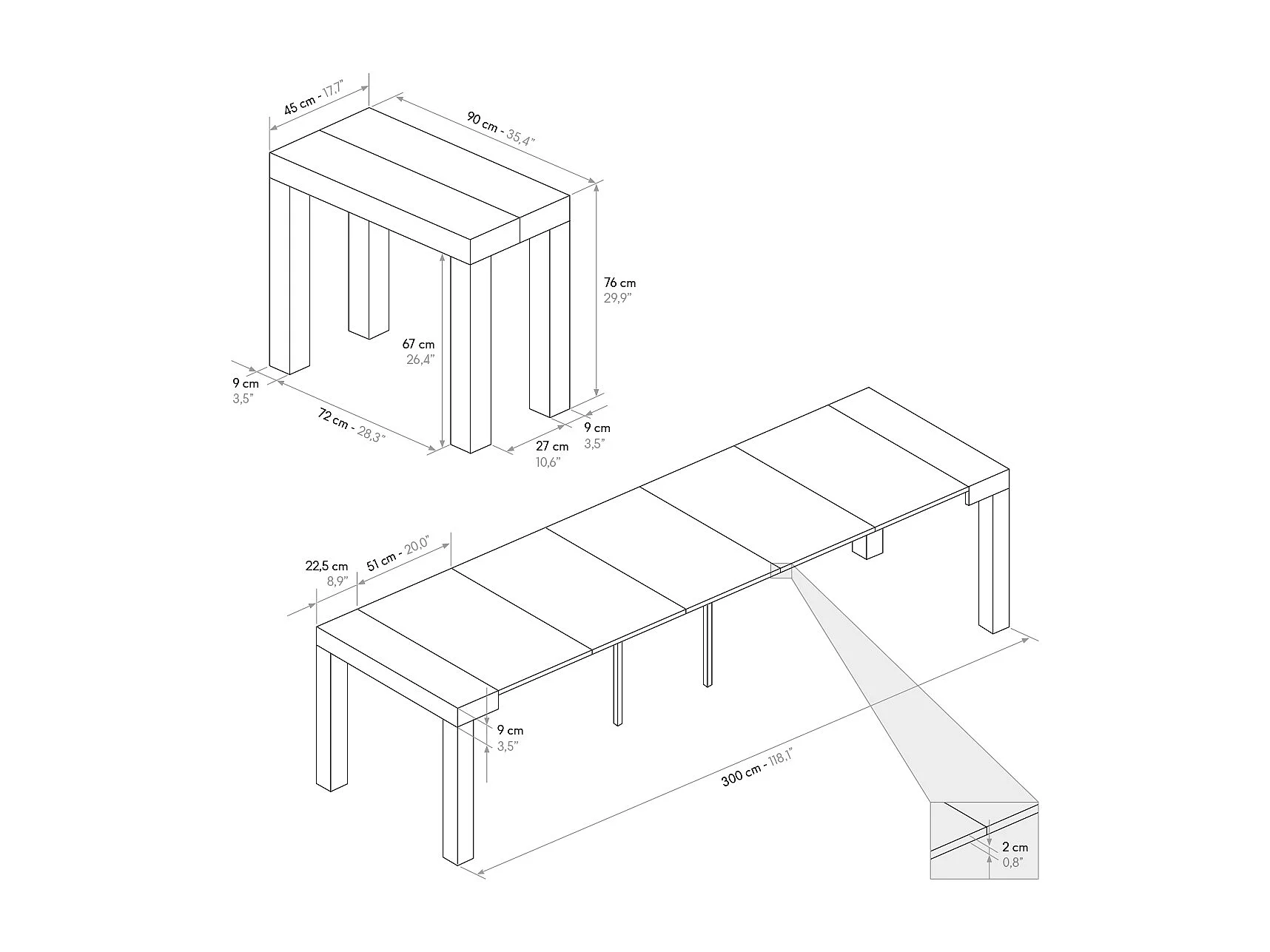 Tavolo Consolle Allungabile Margot, Olmo perla, Made in Italy, da 45 a 300 cm