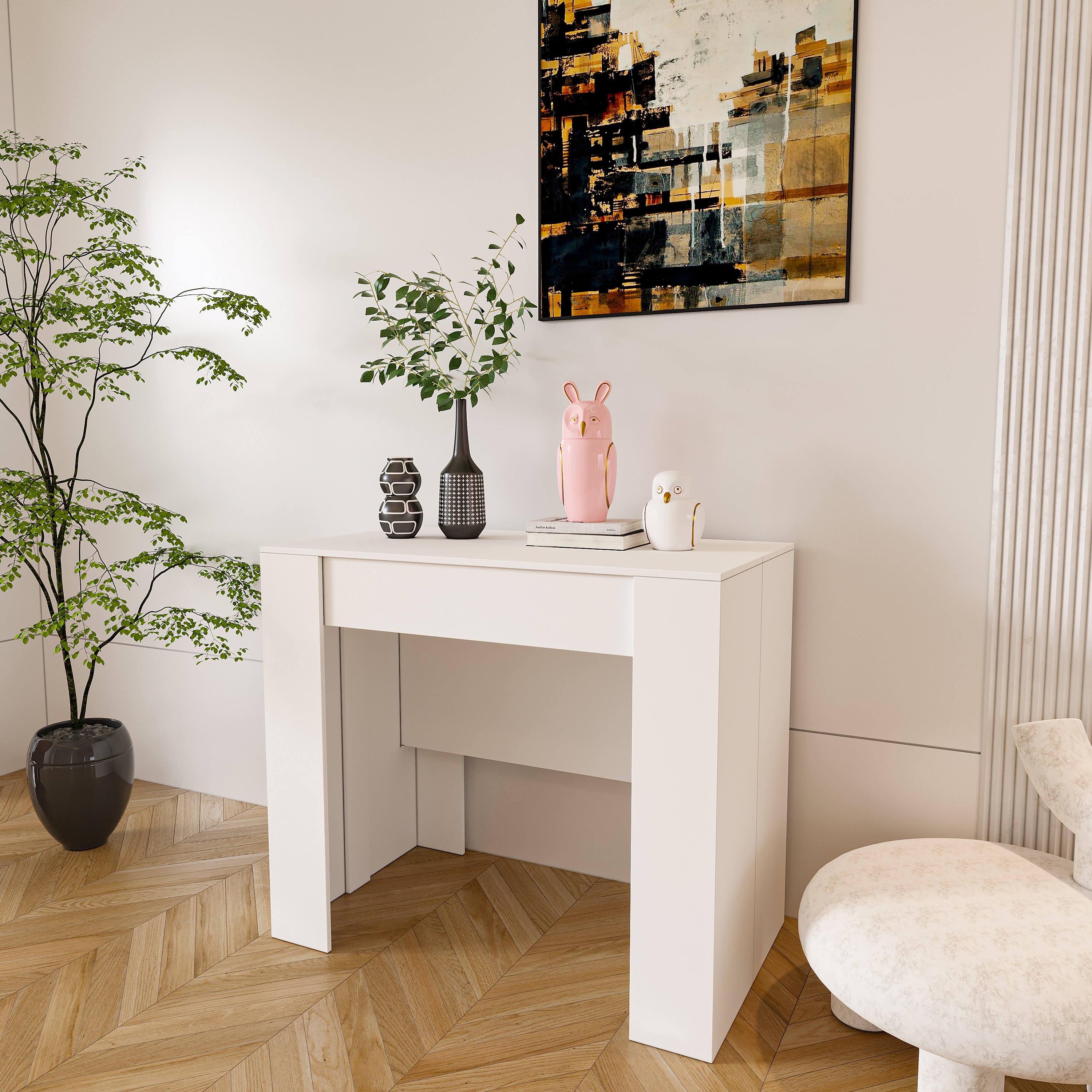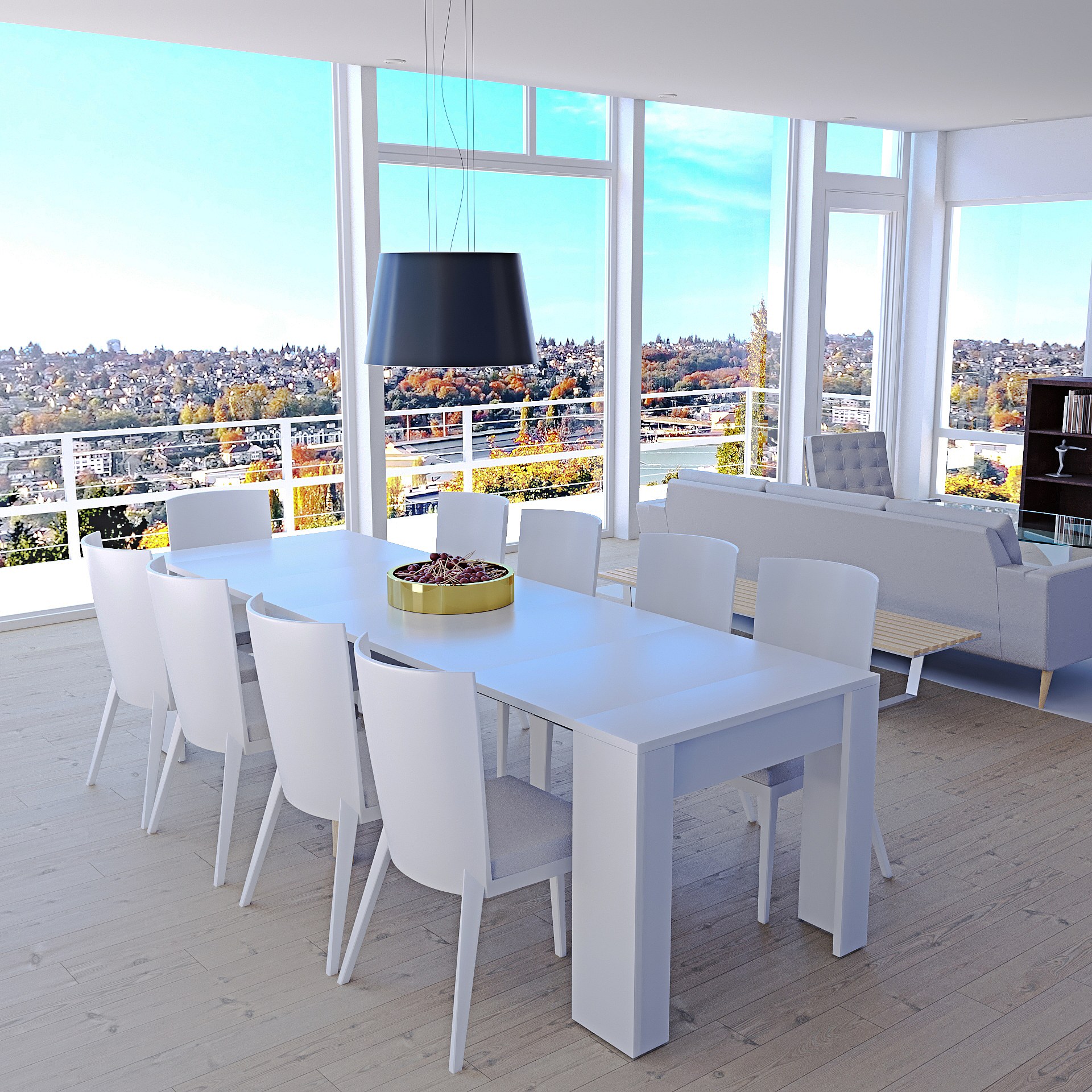 Tavolo Consolle Allungabile Oslo Plus Fino A 3 Metri, Tavolo 14 Posti Salvaspazio, Consolle per Casa E Ufficio, 78 x 51 x 90 cm, Bianco Lucido