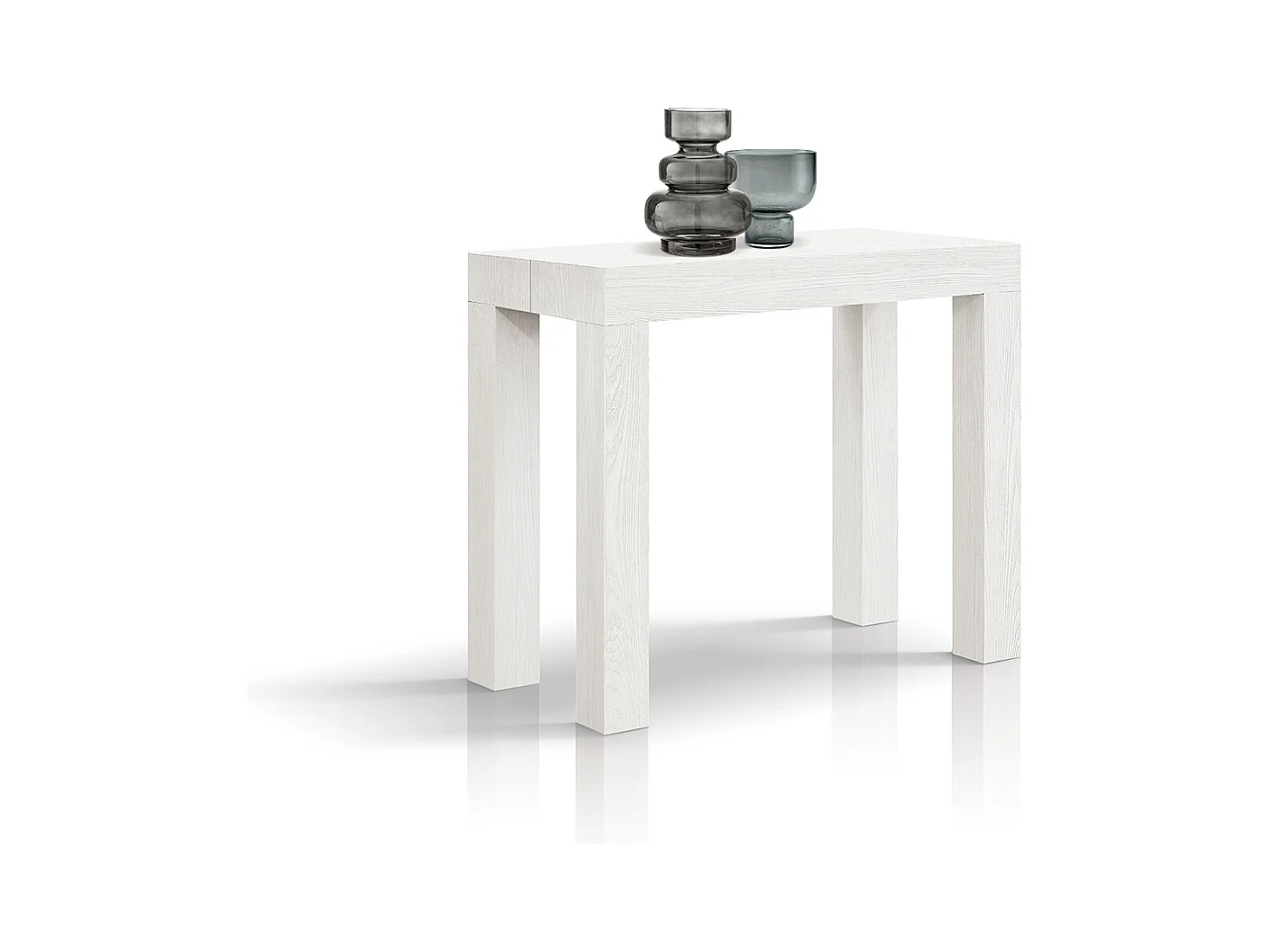 Tavolo Consolle allungabile Virginia, bianco frassinato, Nobilitato,Made in Italy, da 45 a 300 cm