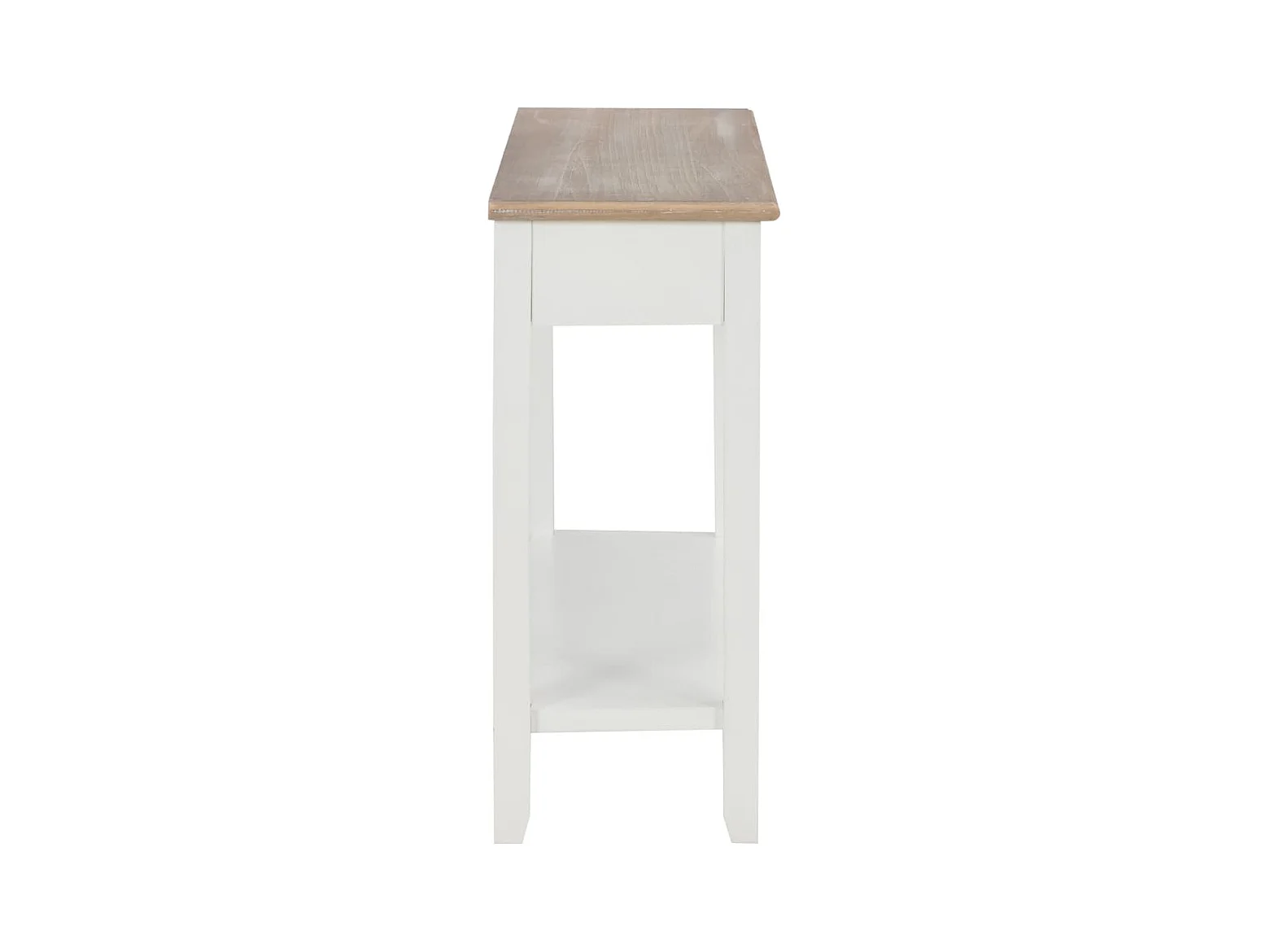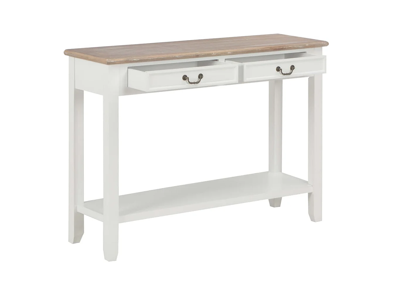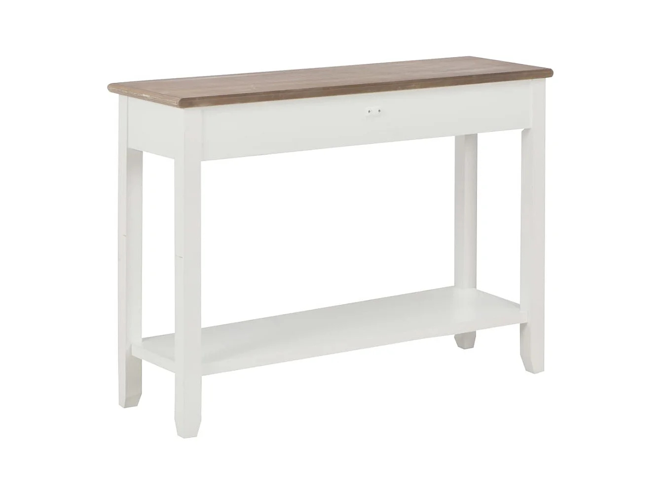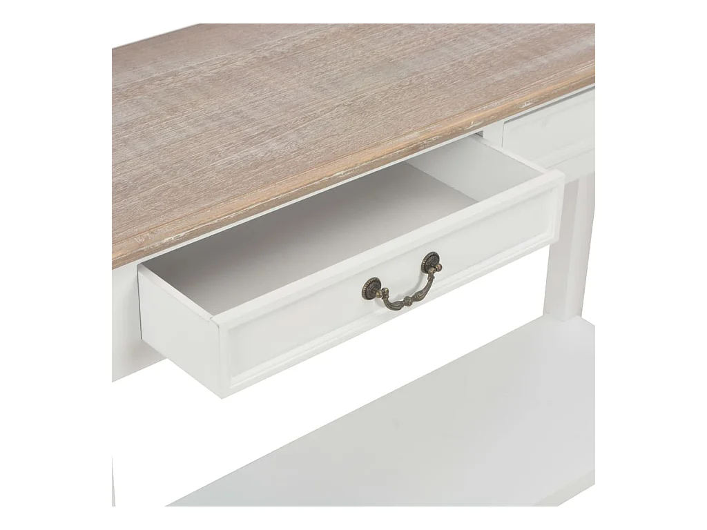 Consolle con 1 ripiano e 2 cassetti di design coloniale - 97x35xH76 cm, colore bianco e piano in rovere chiaro - Collezione MADERA