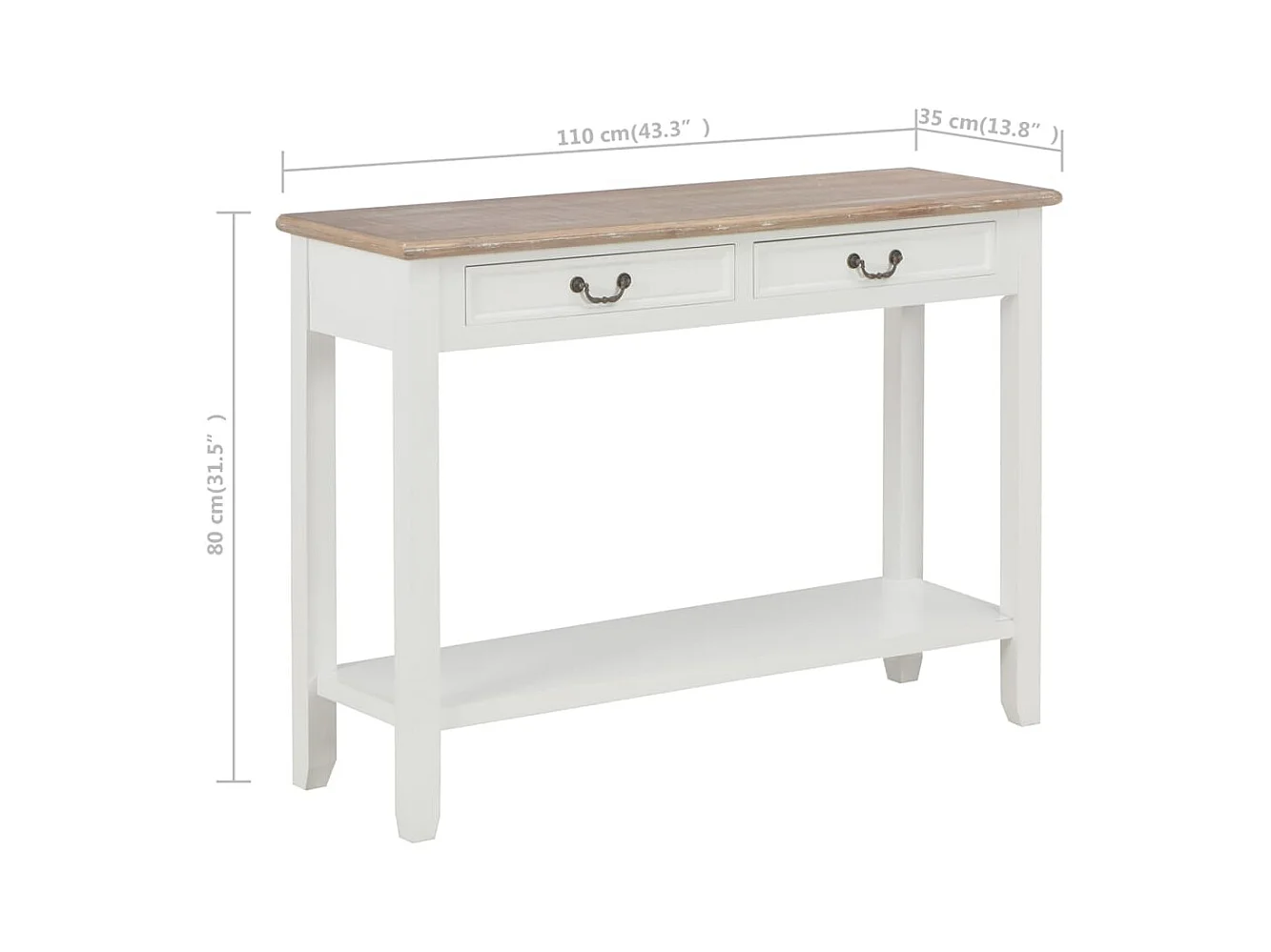 Tavolo Consolle Bianco 110x35x80 cm in Legno