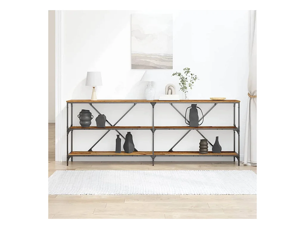 Tavolo consolle in rovere Sonoma 180x30x75cm in legno ingegnerizzato e ferro