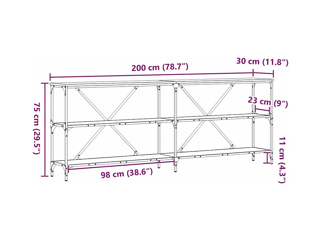 Tavolo consolle con ripiano in rovere Sonoma 105x30x75 cm